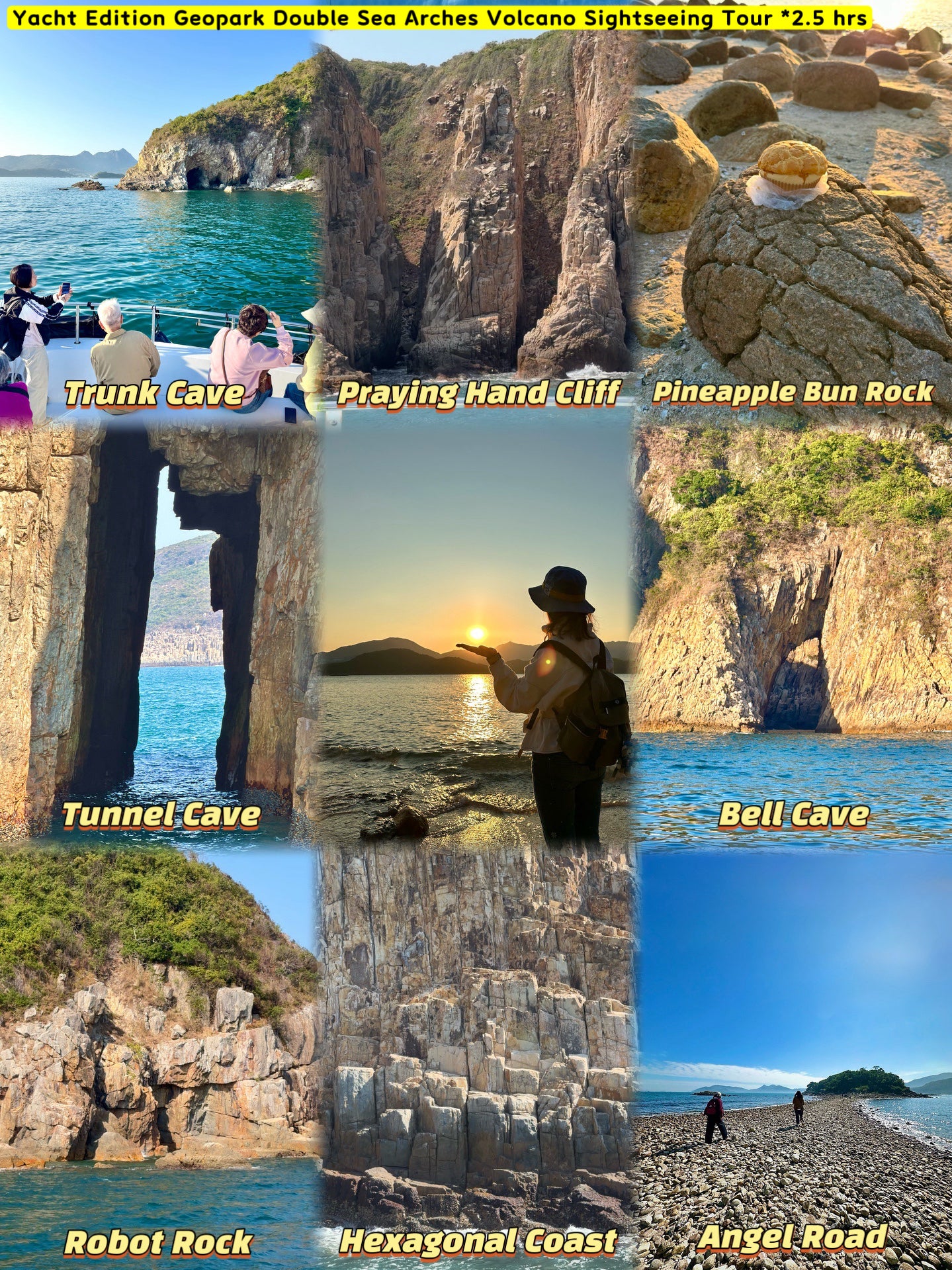 香港のユネスコ世界ジオパークで最も壮麗な景観をヨットで巡り、世界最大の六角形火山岩柱群や壮大な海食アーチを鑑賞。情熱的なガイドが地質の不思議や海岸の美しさを紹介し、特別な没入体験を提供します。