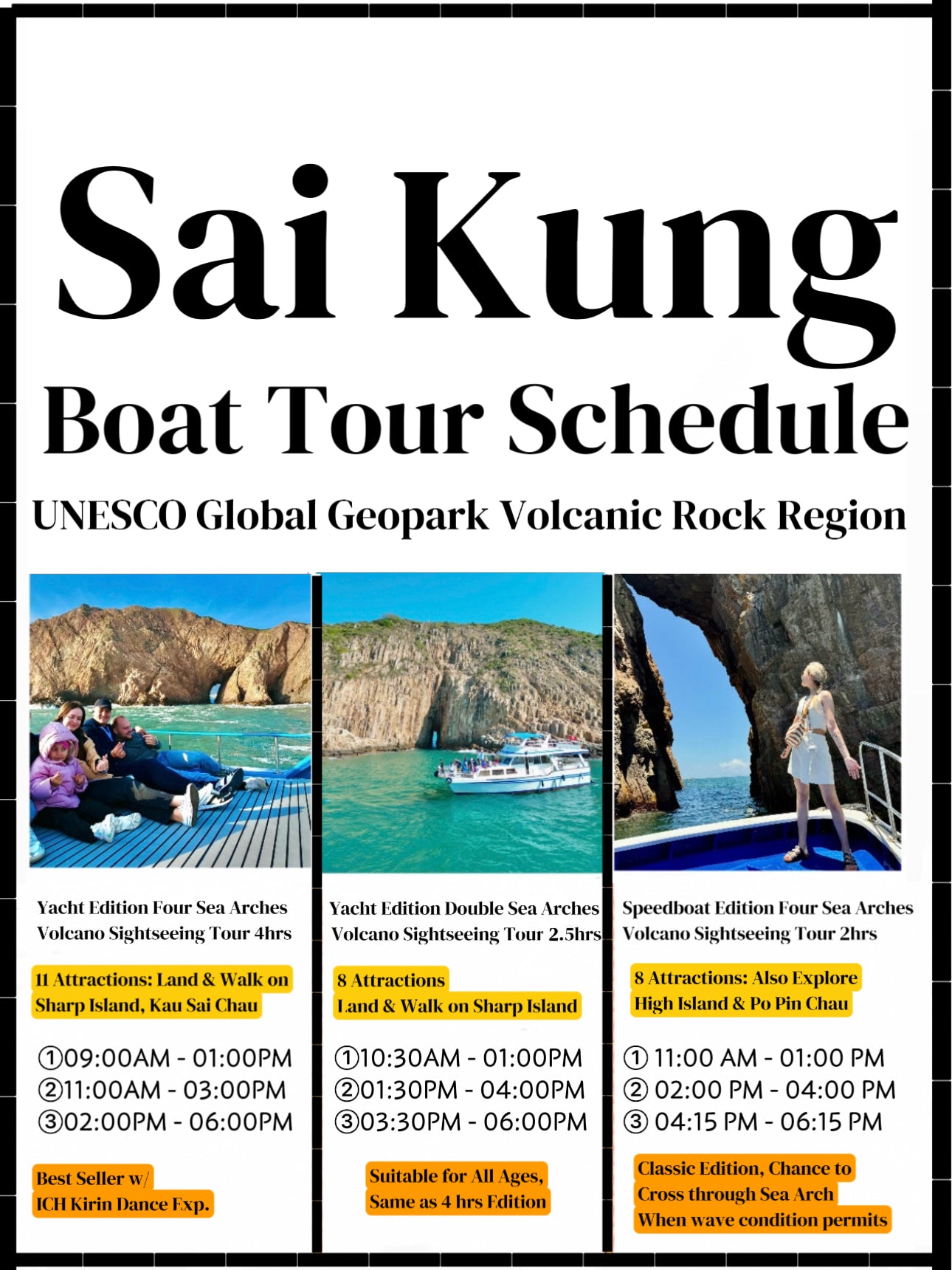 ジオパーク フォー シー アーチ 火山観光船ツアーは、世界最大の六角形の火山岩柱群を訪れる香港のスピードボート ツアーです。8 つの地質学的驚異があなたを待っています。お見逃しなく。忘れられない旅にぜひご参加ください。(Splitdyboat のジオパーク ツアー シリーズの第 2 章: 謎の恐竜の化石)