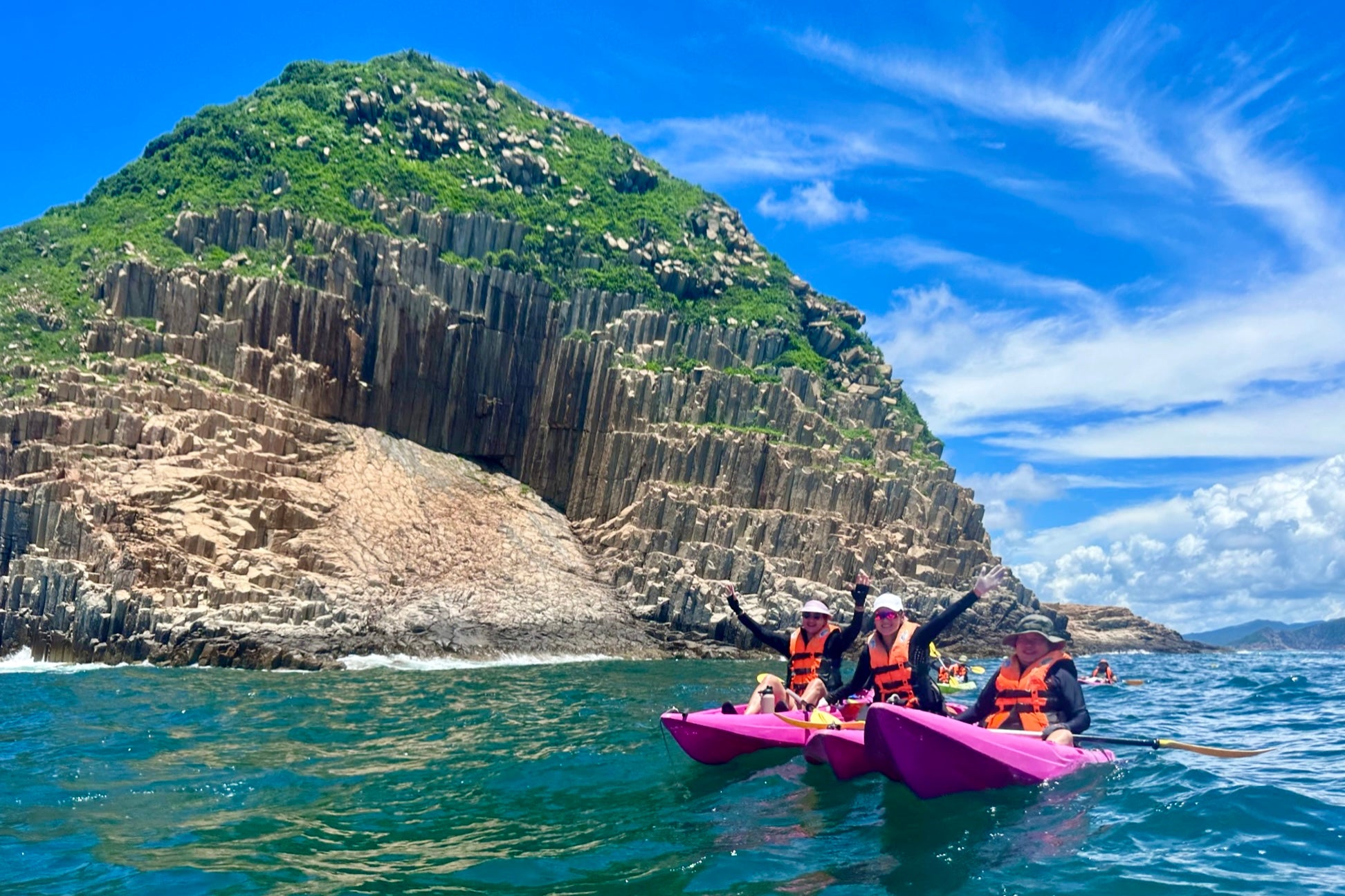 世界最大の六角形の火山岩柱群を訪れる香港ジオパークカヤックツアー