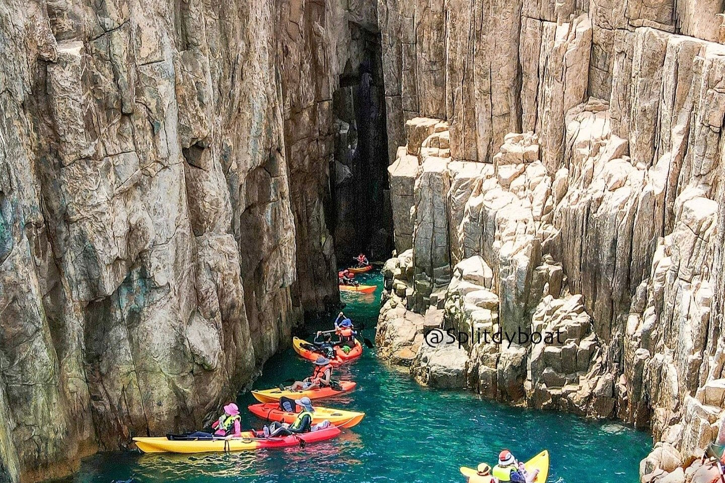 Splitdyboat で、北ナインピン島にある世界最大の六角形の火山岩柱と、南ナインピン島にある香港で最も素晴らしい海の地形を探検しましょう!
