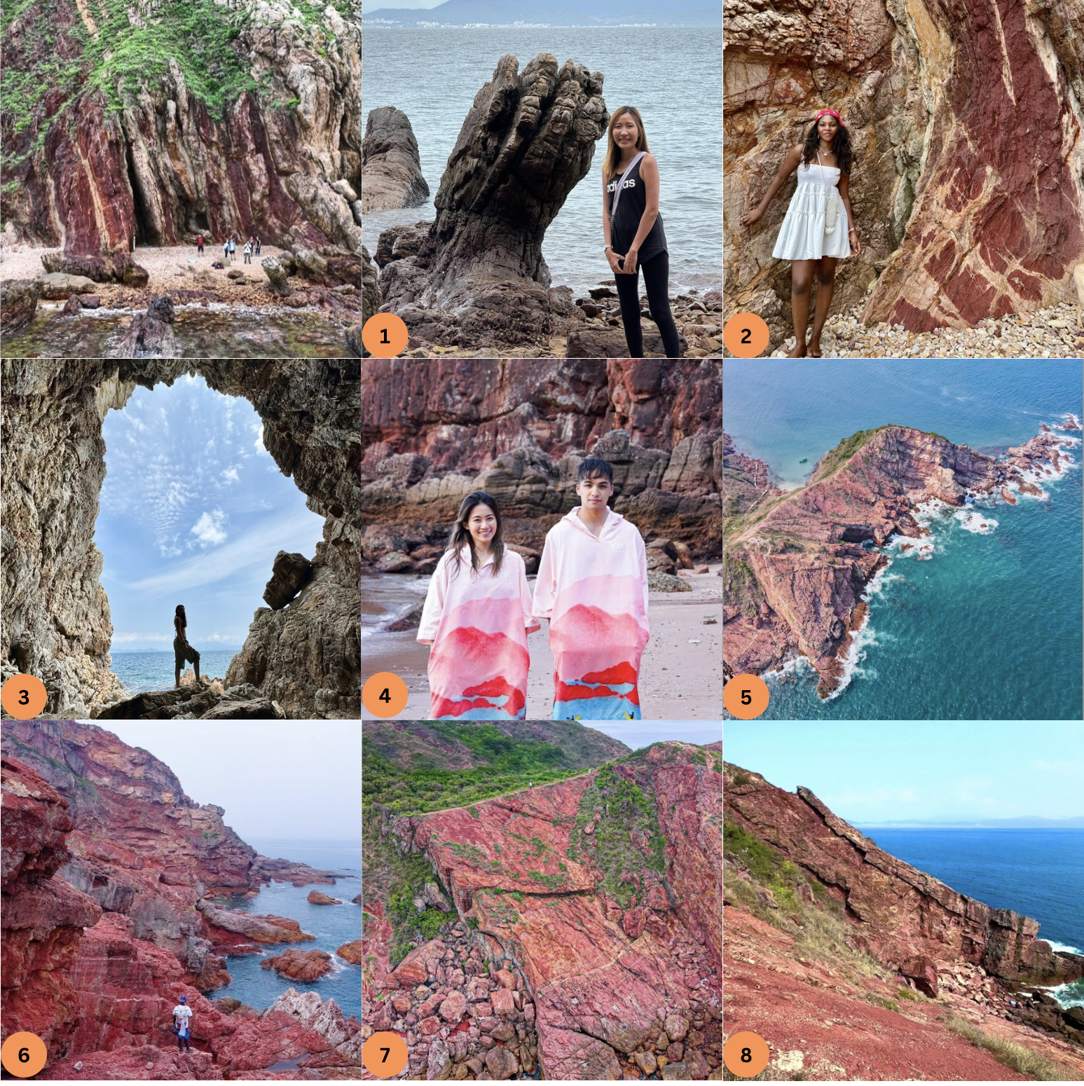 ポート アイランドの赤い尾根は、世界中の他の赤い岩の風景とは一線を画す地質学的驚異です。一般的な陸上の赤い岩層とは異なり、このユニークな海岸線は、深紅の山頂が海に出会う珍しい光景を提供し、鉄分を豊富に含む堆積岩と青い海水がシームレスに融合した息を呑むようなパノラマを作り出し、海丹霞という名前が付けられました。(ポート アイランドの赤い尾根は、レッド ビーチから 10 分の短いハイキングでアクセスでき、ツアーの最高地点であるため、それ以上登る必要はありません。)