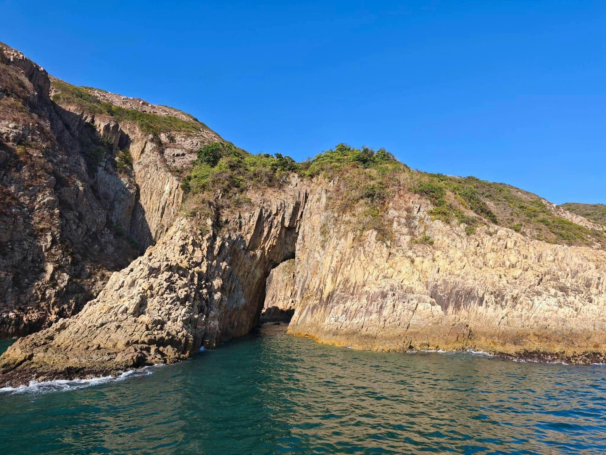 One of the Four Sea Arches in East China Seas, located in Bluff Island of Ung Kong Group in Sai Kung. It's actually a 30 meters long Tunnel Cave, unlike the other arches