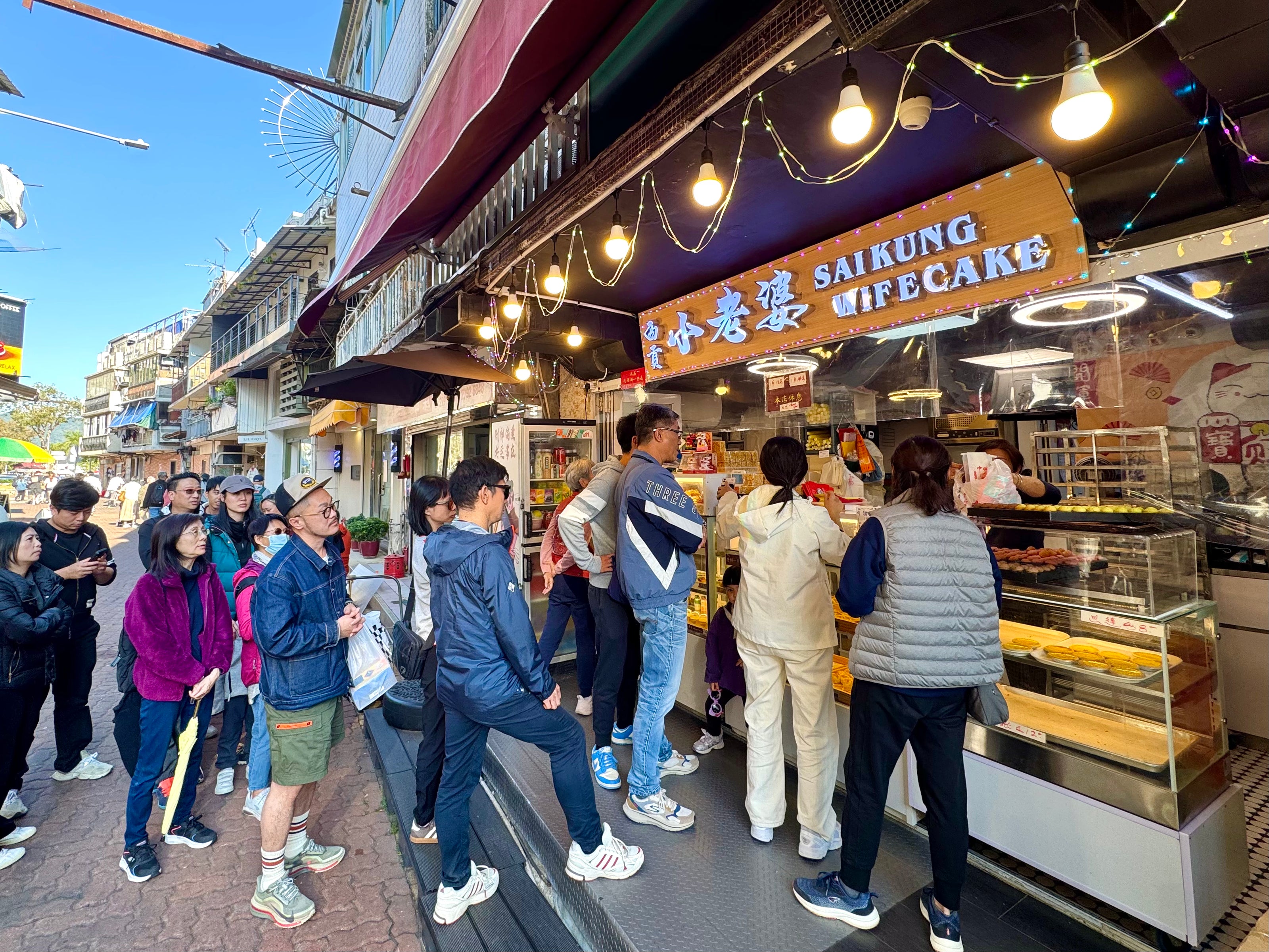 사이쿵 와이프 케이크(西貢小老婆)는 홍콩 사이쿵에서 인기 있는 길거리 간식으로, 오리지널, 코코넛 타르트, 초콜릿, 판단 등 다양한 맛의 1달러짜리 에그 와플로 유명합니다. 홍콩 지질공원 투어 및 체험과 함께 즐기기에 완벽한 조합입니다!