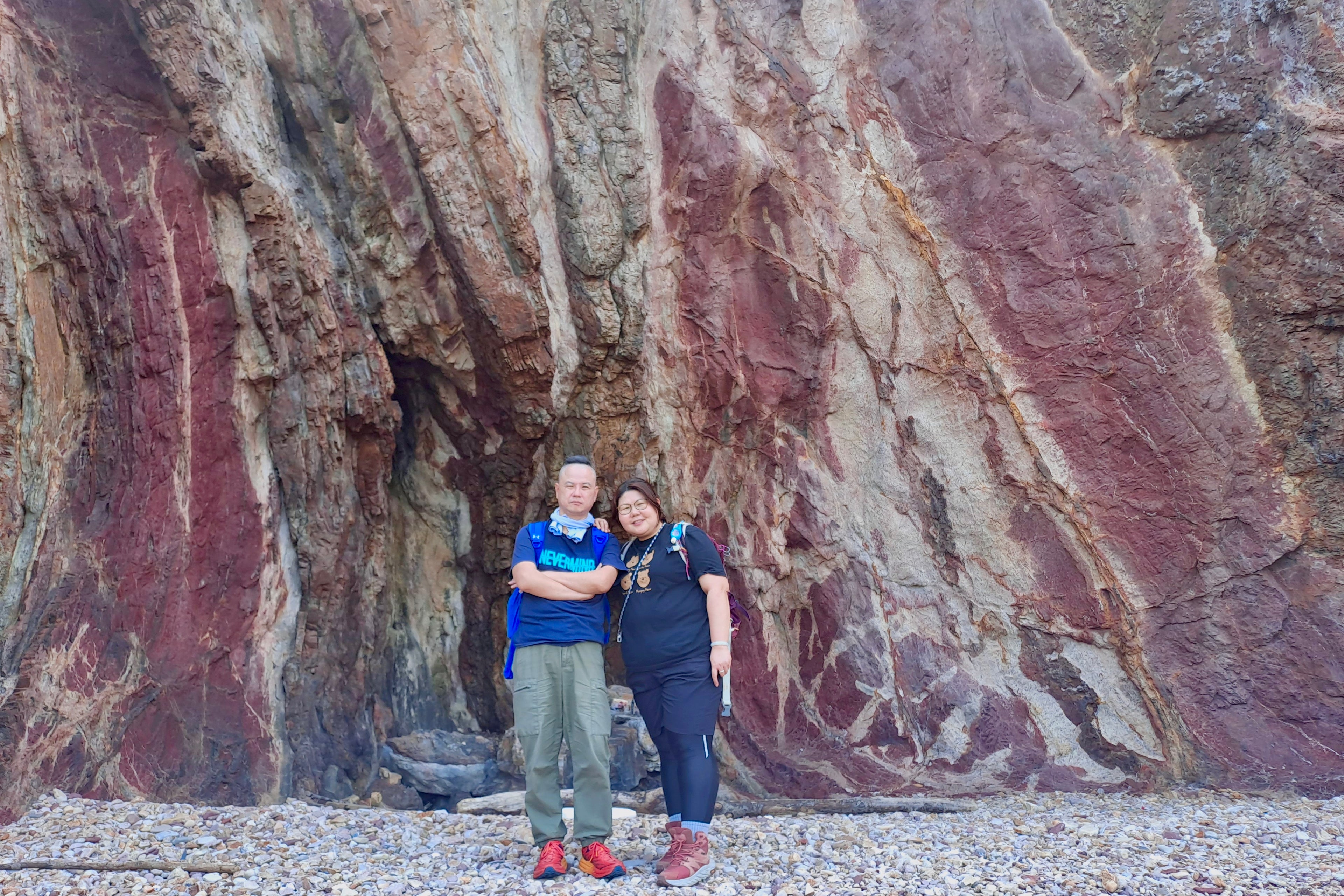 블러프 헤드(웡척콕추이)에 위치한 베이컨 록은 베이컨 조각을 닮은 붉은 사암으로 이루어져 있습니다. 4억 년 동안 다양한 산화 수준을 가진 퇴적암 층으로 형성되었으며, 독특한 색깔 띠는 이 지역의 복잡한 지질학적 역사를 보여줍니다. 풍화와 해안 침식으로 형성되었습니다.