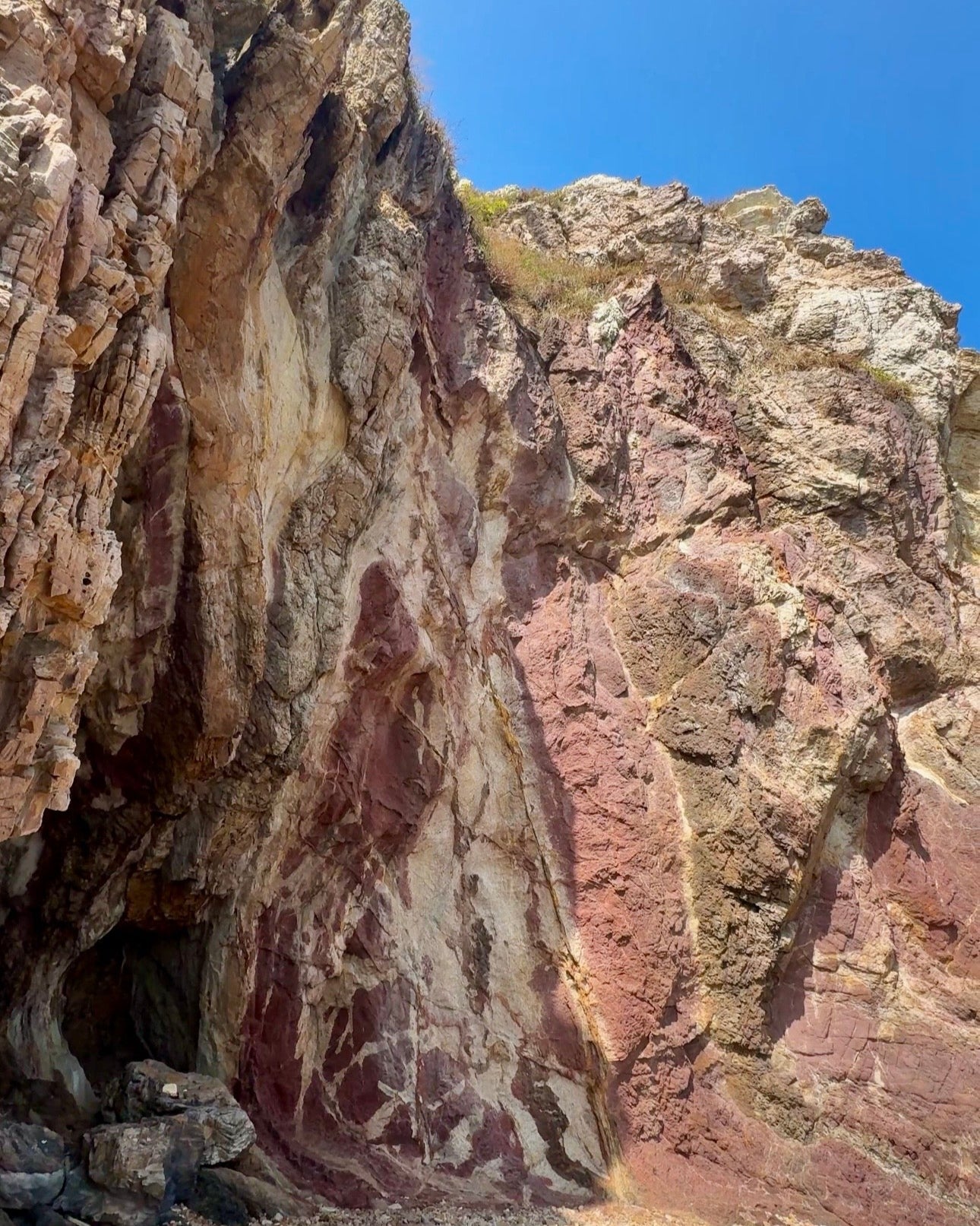 데빌스 피스트 근처에 숨겨진 보석 같은 곳은 이 상징적인 암석층을 독특한 시각으로 감상할 수 있는 작은 바다 동굴입니다. 동굴은 데빌스 피스트를 감싸 안아 멋진 사진 촬영 장소를 만들어냅니다. 보트를 타고 갈 수 있는 가이드 투어에 참여하면, 동굴의 울퉁불퉁한 내부와 대조되는 데빌스 피스트의 "손가락"이 만들어내는 극적인 풍경을 감상할 수 있습니다. 반원형 만은 데본기의 붉은 암석으로 둘러싸여 있습니다. 데빌스 피스트의 해안은 접근하기 어렵고, 데빌스 피스트는 썰물 때만 볼 수 있다는 점에 유의하세요.