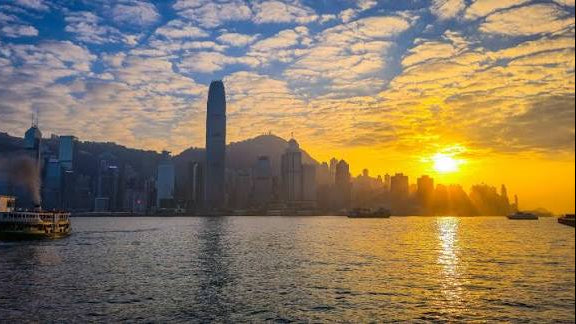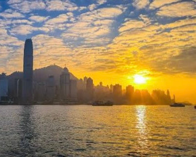Golden hour in Victoria Harbour bathes the skyline in warm, golden light, perfect for stunning photos and breathtaking sunset views.