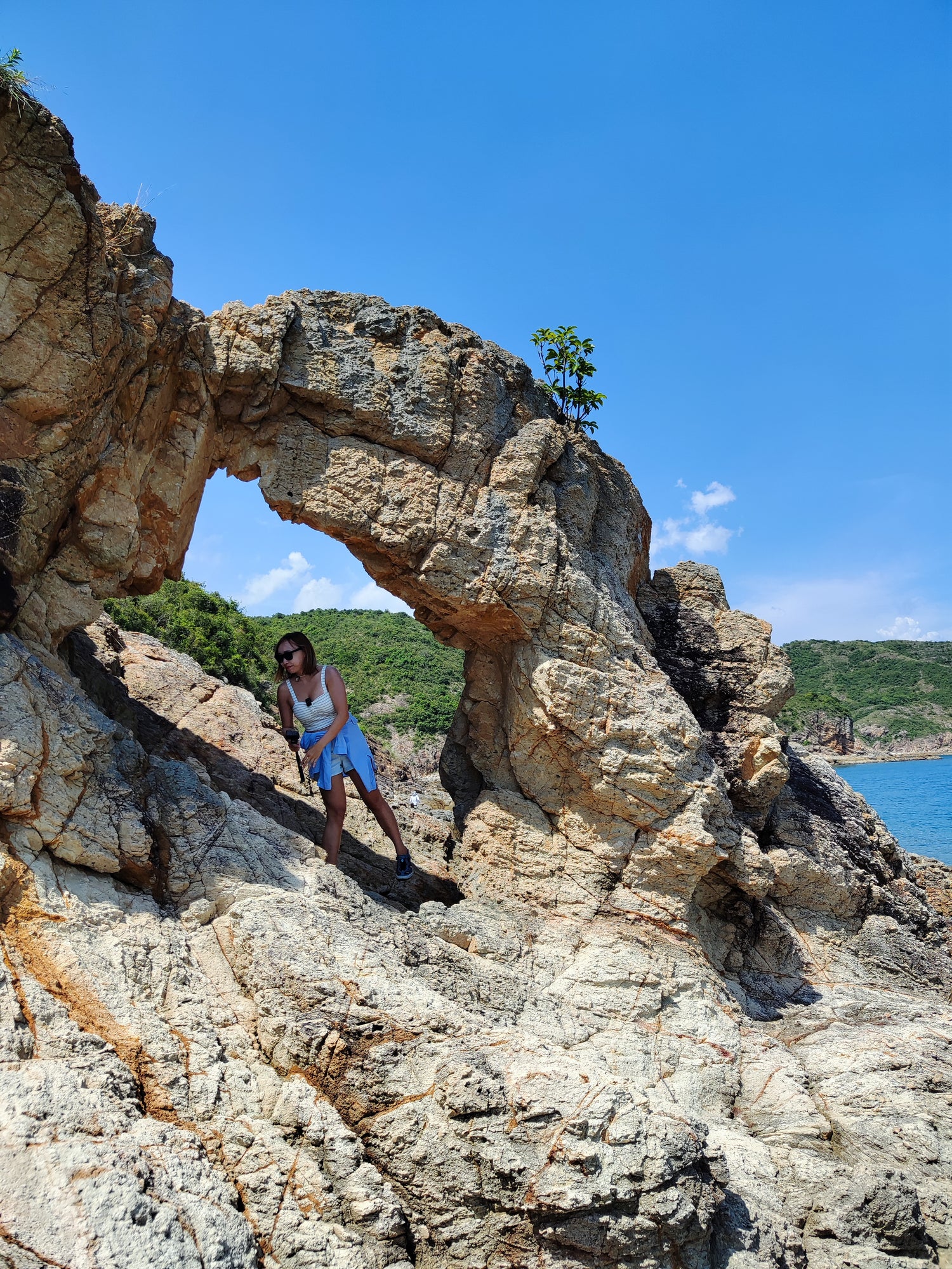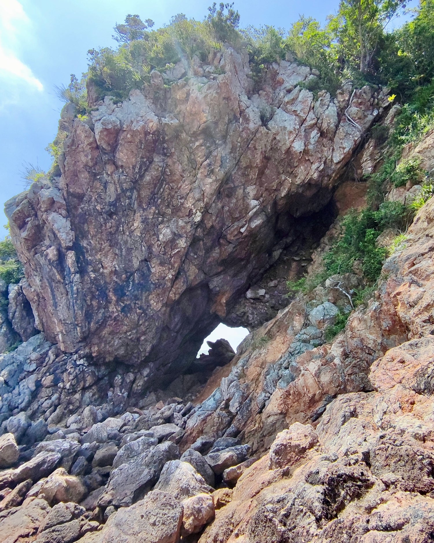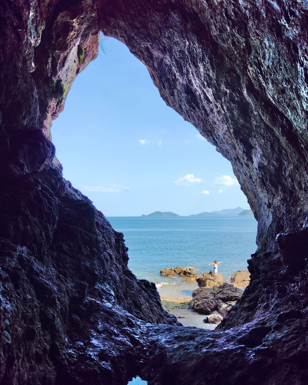 "Spirit Turtle Guard Cave," on Wong Nai Chau features a rock formation resembling a turtle. This unique cave, with its intriguing entrance, captivates visitors with its natural beauty and offers a serene spot for exploration amidst the island's coastal scenery.