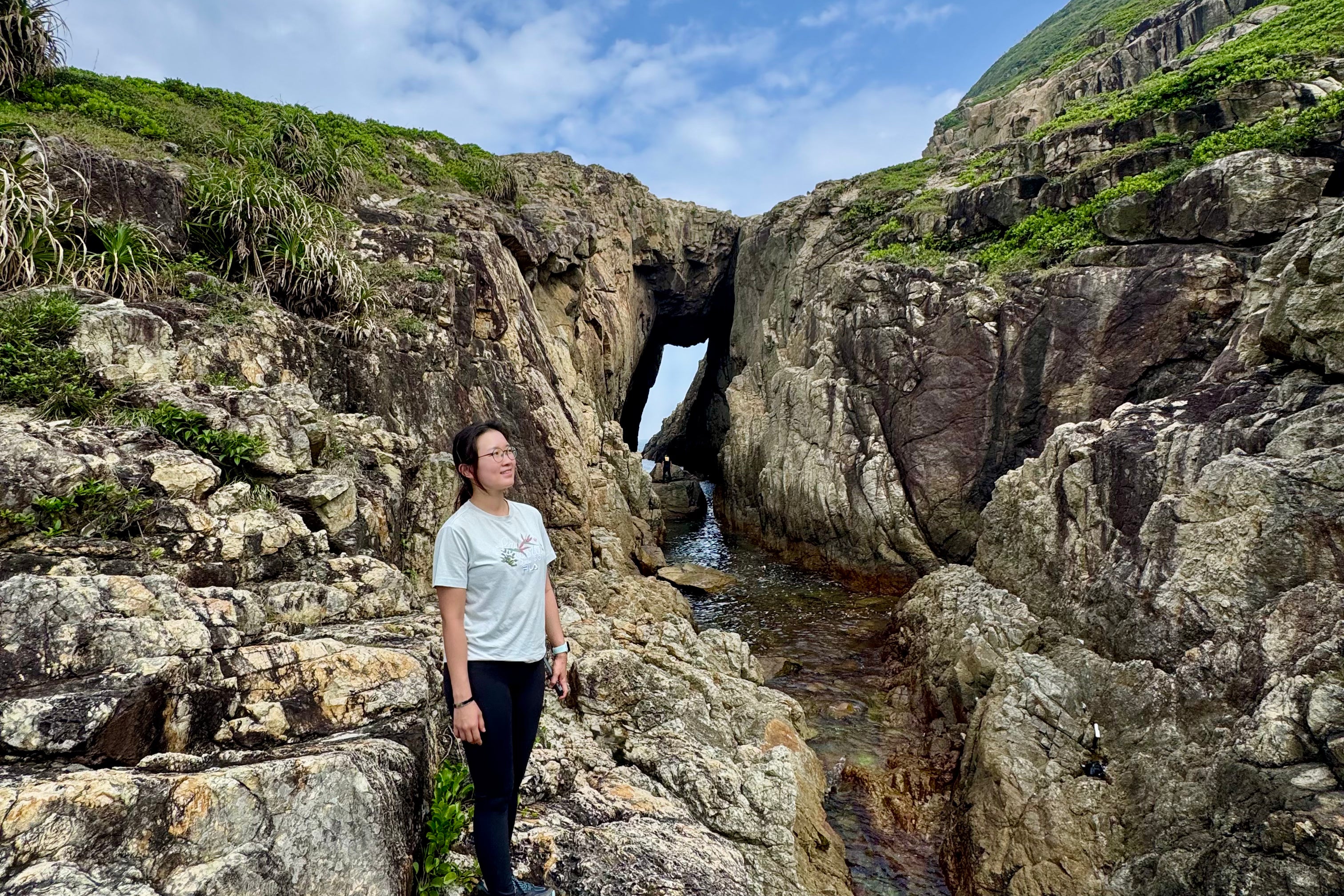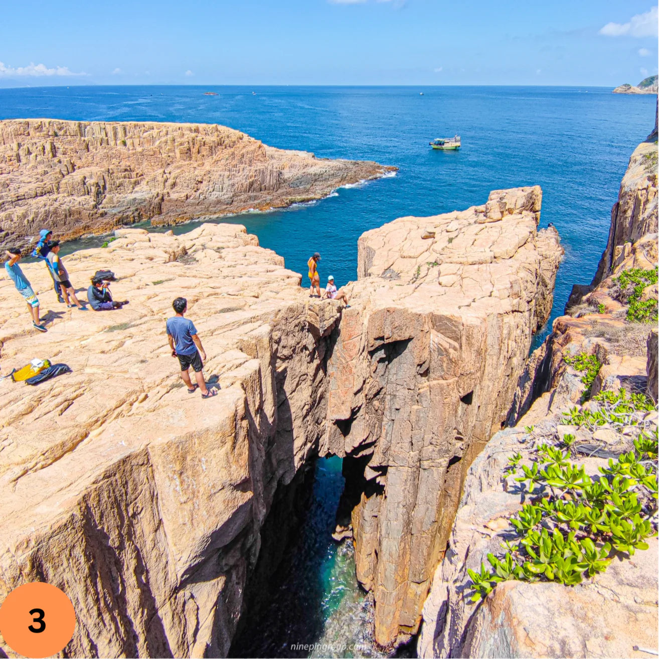 Big Stove Arch on North Ninepin Island is a stunning natural sea arch formed by wave erosion of volcanic rock. Visitors can walk on top of this impressive double-connected corridor, enjoying breathtaking views framed by towering hexagonal rock columns, which showcases the power of coastal erosion in Hong Kong Geopark.