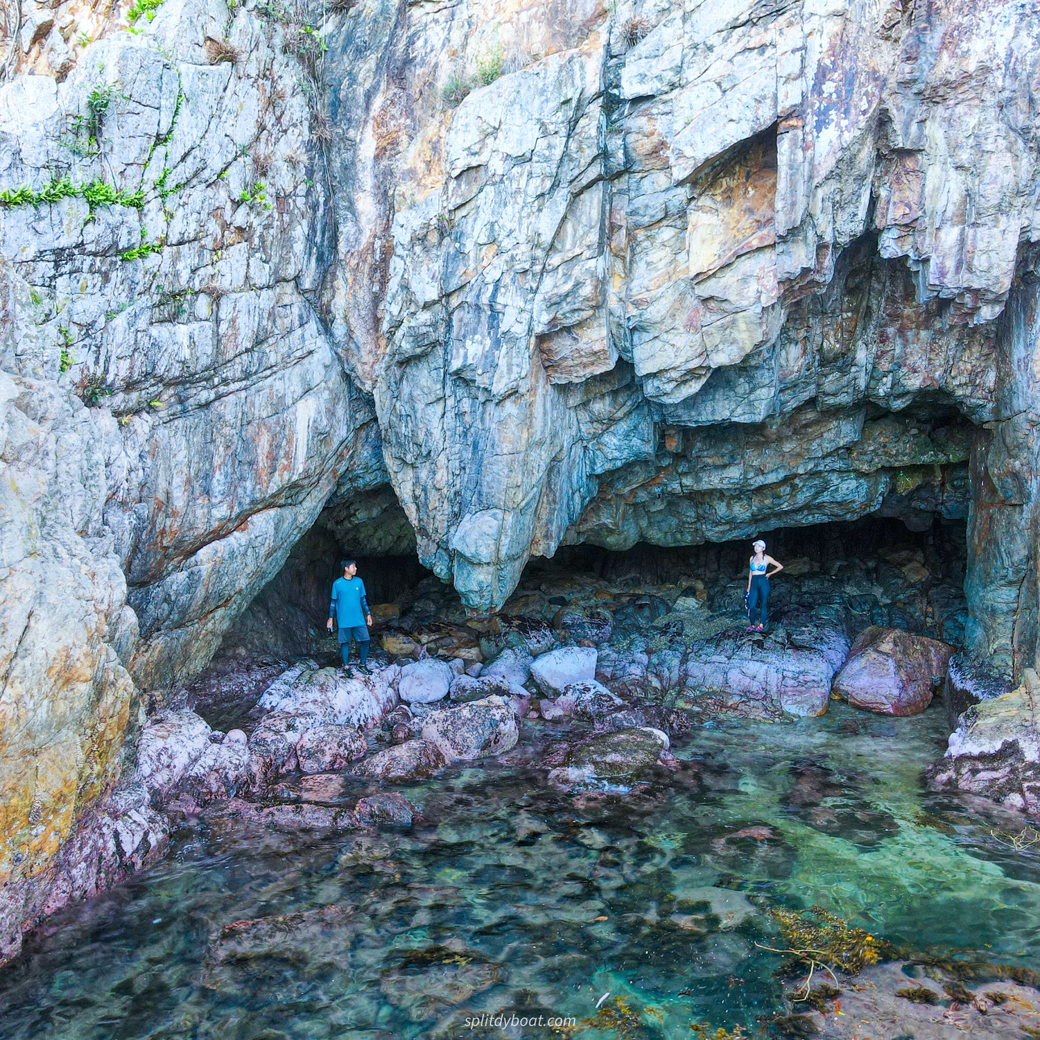 Three sea caves in Sharp Island resembling an elephant's trunk, formed by erosion, offering a unique exploration spot amidst Sharp Island's dramatic geological landscape.