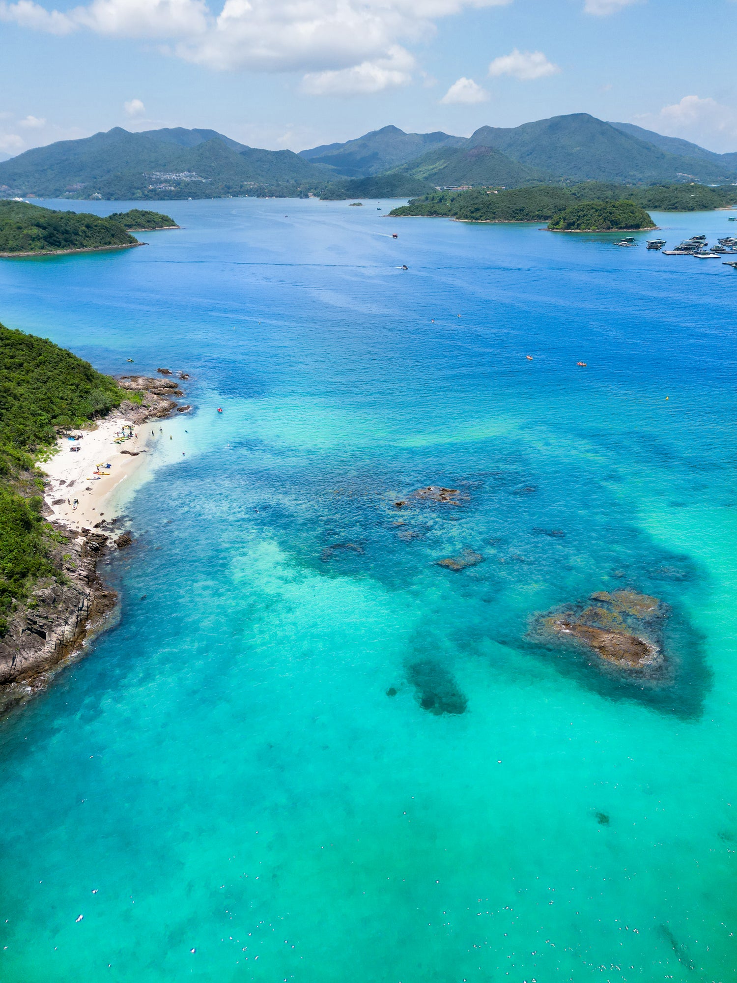 Long Mong Wan, located on east side of Sharp Island in Sai Kung, Hong Kong, is a breathtaking beach renowned for its stunning natural beauty and vibrant marine life.