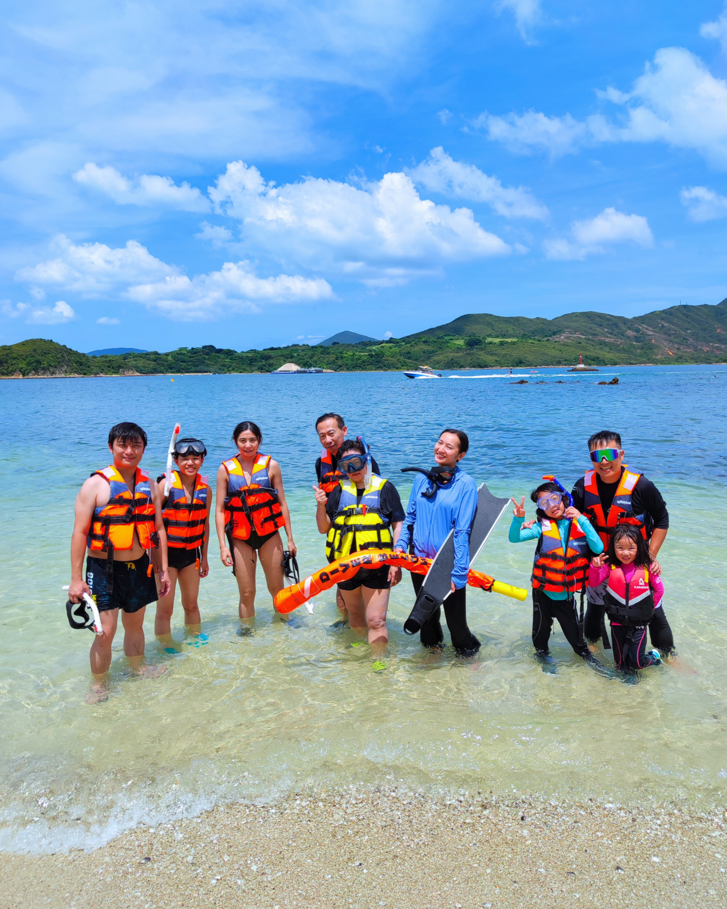 The speedboat ride provides a thrilling experience as you glide across the clear waters of Sai Kung, offering a unique perspective of the coastline and nearby islands. Once you arrive at Long Mong Wan, you can dive straight into snorkeling among vibrant coral reefs or simply relaxing on the sandy beach.