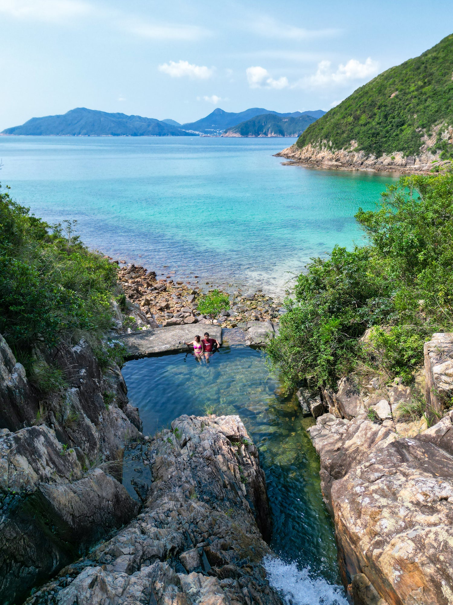 Kau Sai Wan, located in Sai Kung, Hong Kong, is a tranquil beach known for its stunning natural beauty and clear waters. Accessible by speedboat only, it offers a serene escape from city life, ideal for swimming, sunbathing, and snorkelling. The beach features soft golden sands and is surrounded by lush greenery, making it perfect for relaxation and picnicking. Its vibrant marine life and scenic views attract outdoor enthusiasts alike. Kau Sai Wan also features a stunning natural infinity pool, located near the beach. This picturesque pool is formed by a series of rock pools and waterfalls, providing a refreshing spot for visitors to cool off.