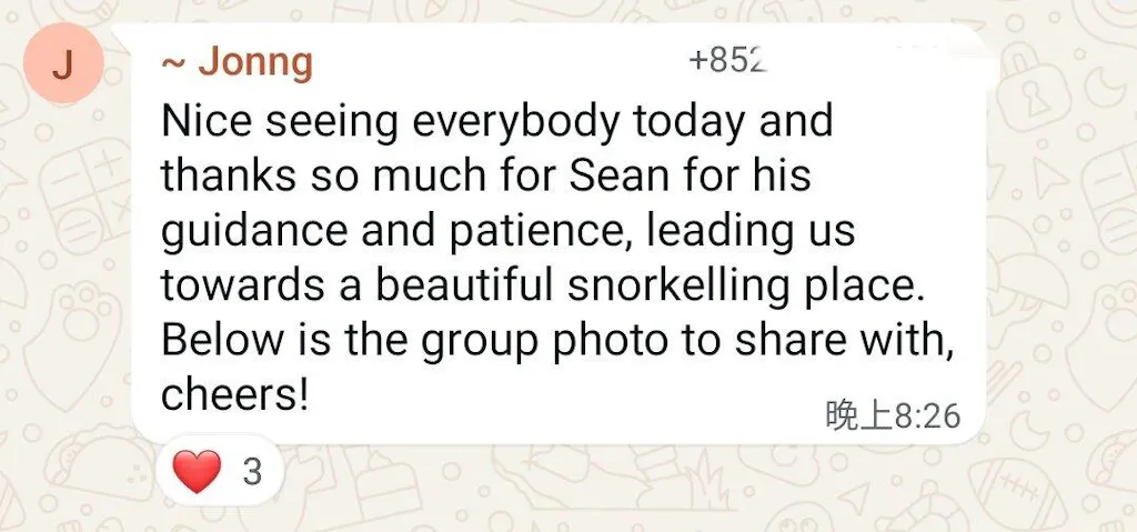 To book our Long Mong Wan Snorkelling Tour, you can place an order directly on this website. If you choose to pay by bank transfer, please remember to contact our live customer service on WhatsApp after completing your payment, and provide them with your payment record for confirmation. We look forward to welcoming you on our tour!