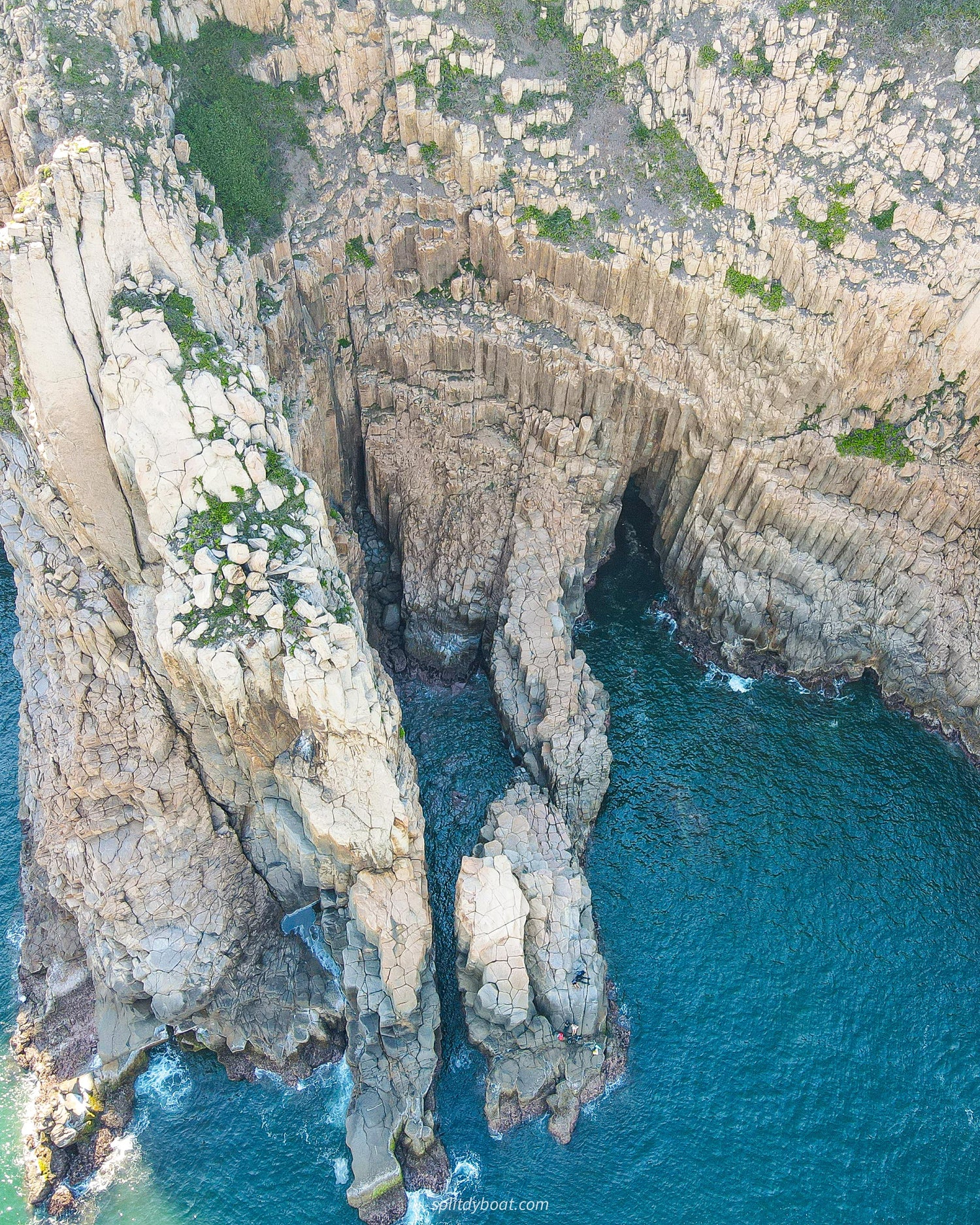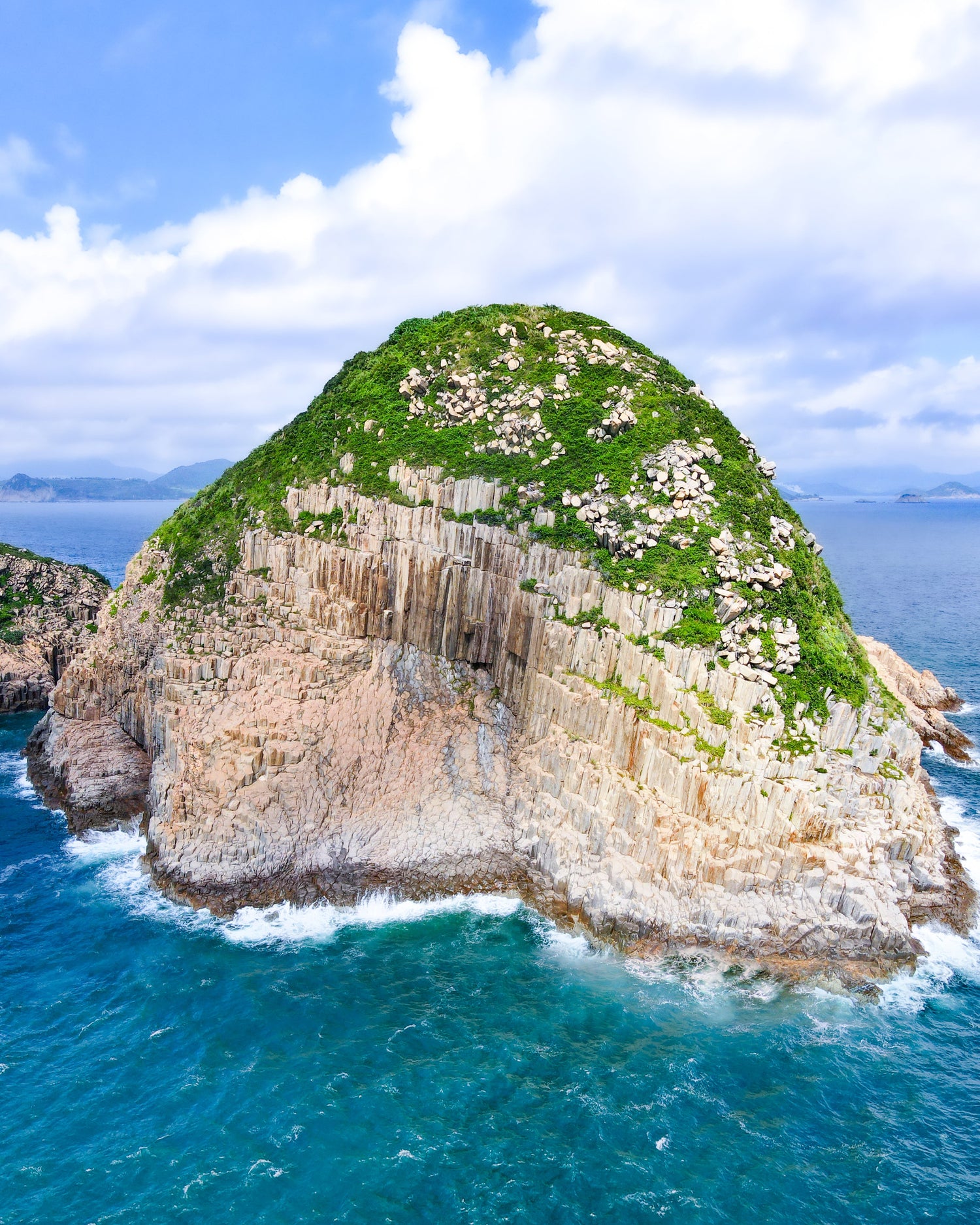 North Ninepin Island, part of the Ninepin Group (Kwo Chau Islands), features rare hexagonal volcanic rock columns, which is the largest in the world. Wave erosion has sculpted signature rock formations and sea caves, such as Big Stove Arch. Reachable by Splitdyboat sightseeing tour or kayaking tour, it offers impressive cliffs and rock formations. The island's columns formed from a volcanic eruption 140 million years ago.