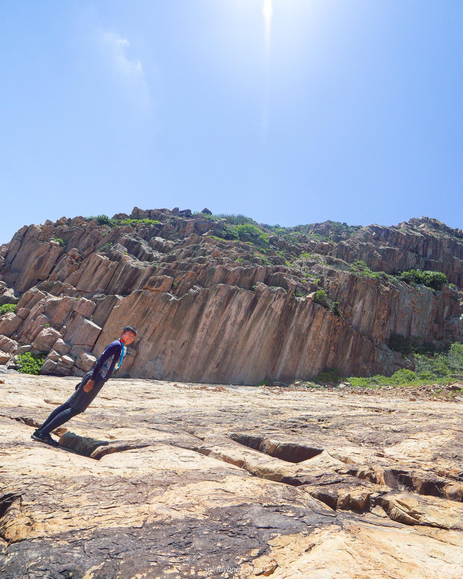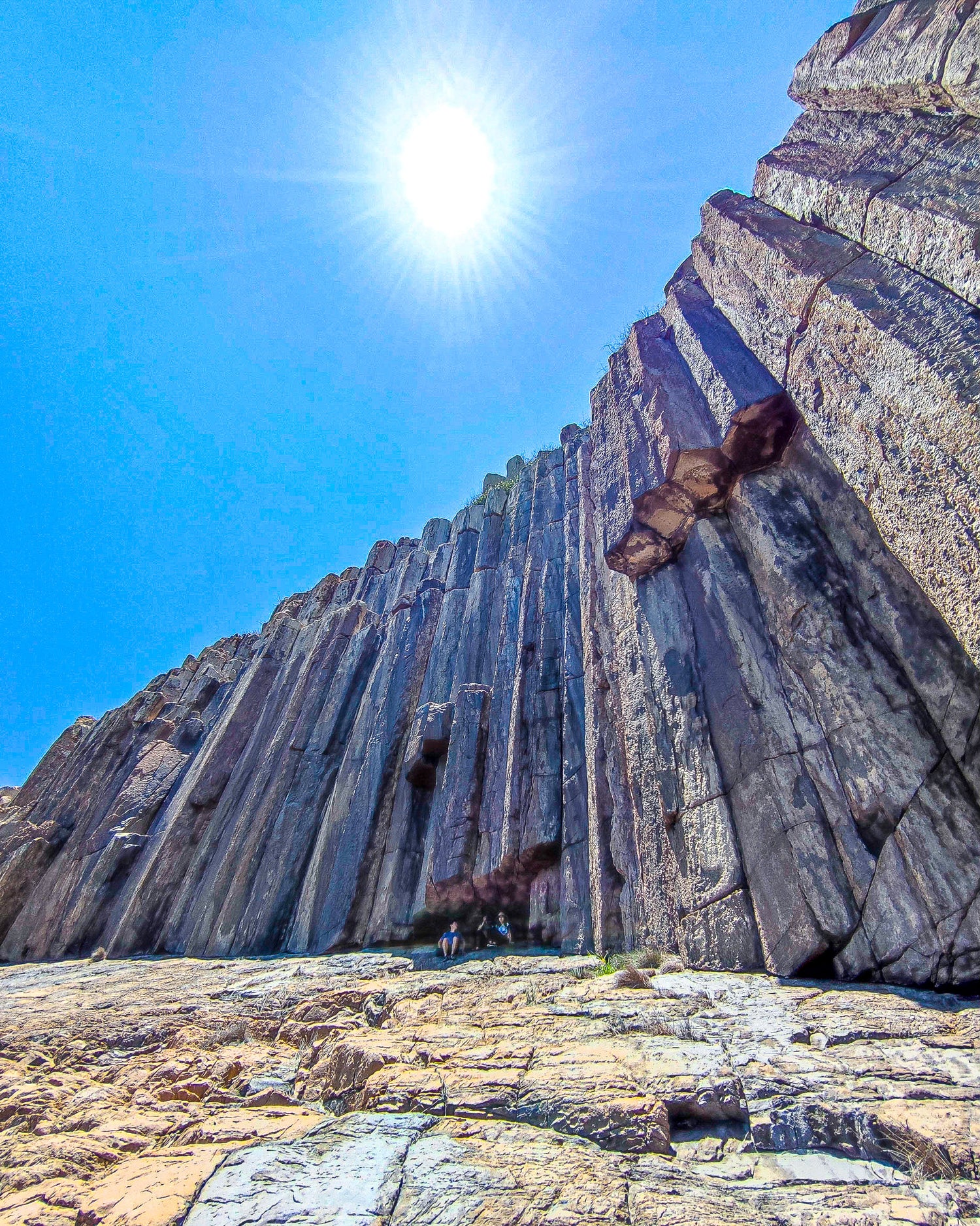 "Outdoor Temple"—a natural enclosure formed by towering hexagonal volcanic rock columns. Sunlight filters through the column gaps, creating a cathedral-like atmosphere. This sanctuary showcases nature's architecture and geological wonders, reminiscent of ancient sacred spaces. These features are also a part of the Hong Kong UNESCO Global Geopark.