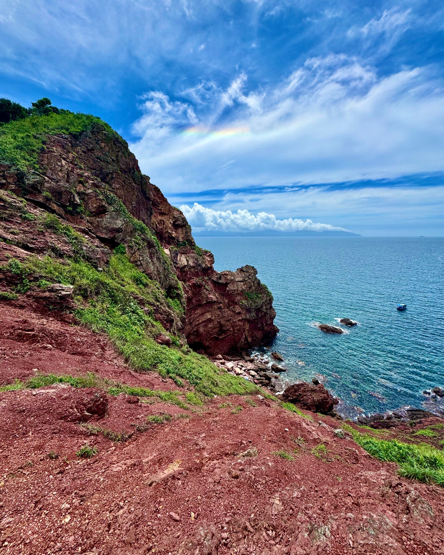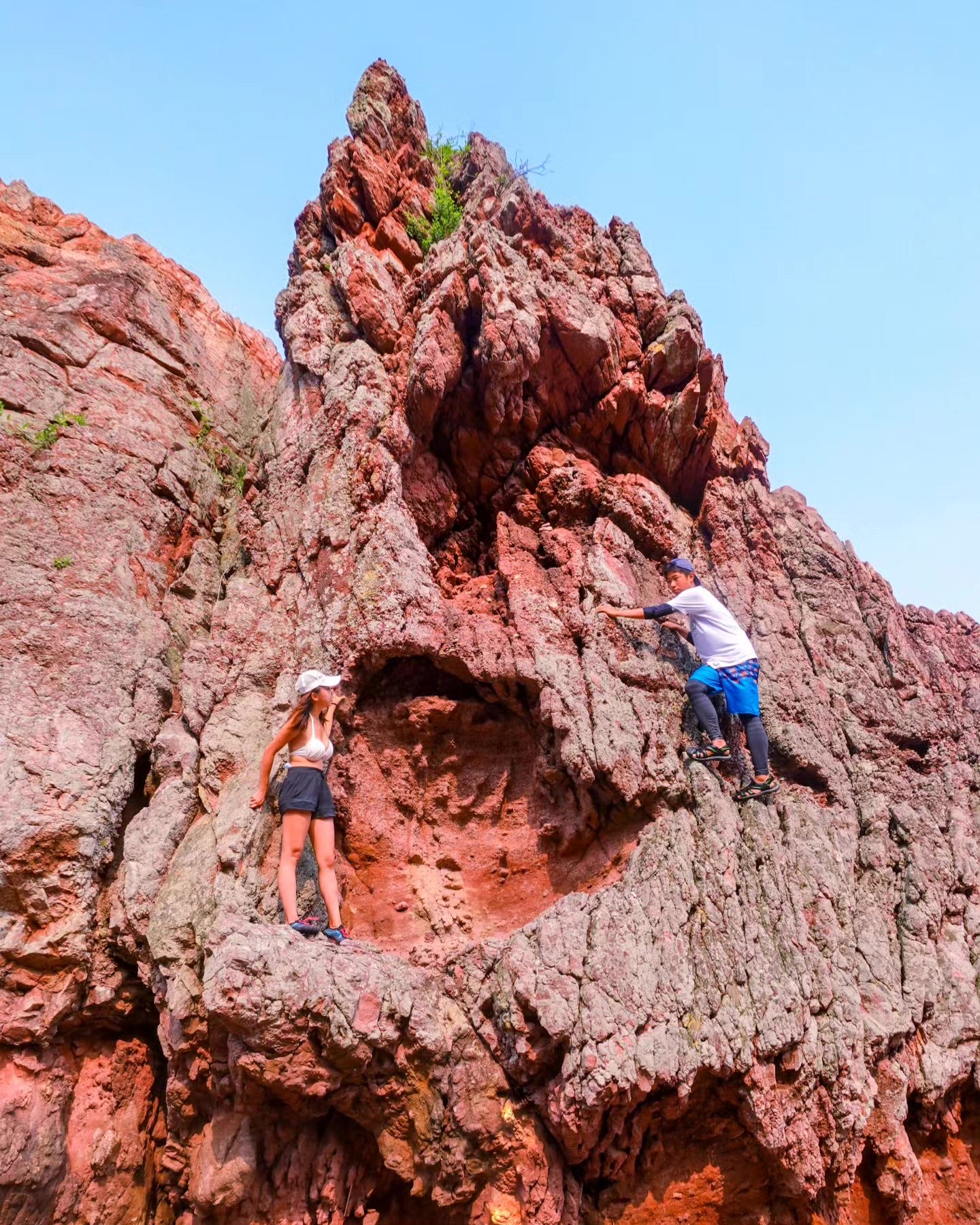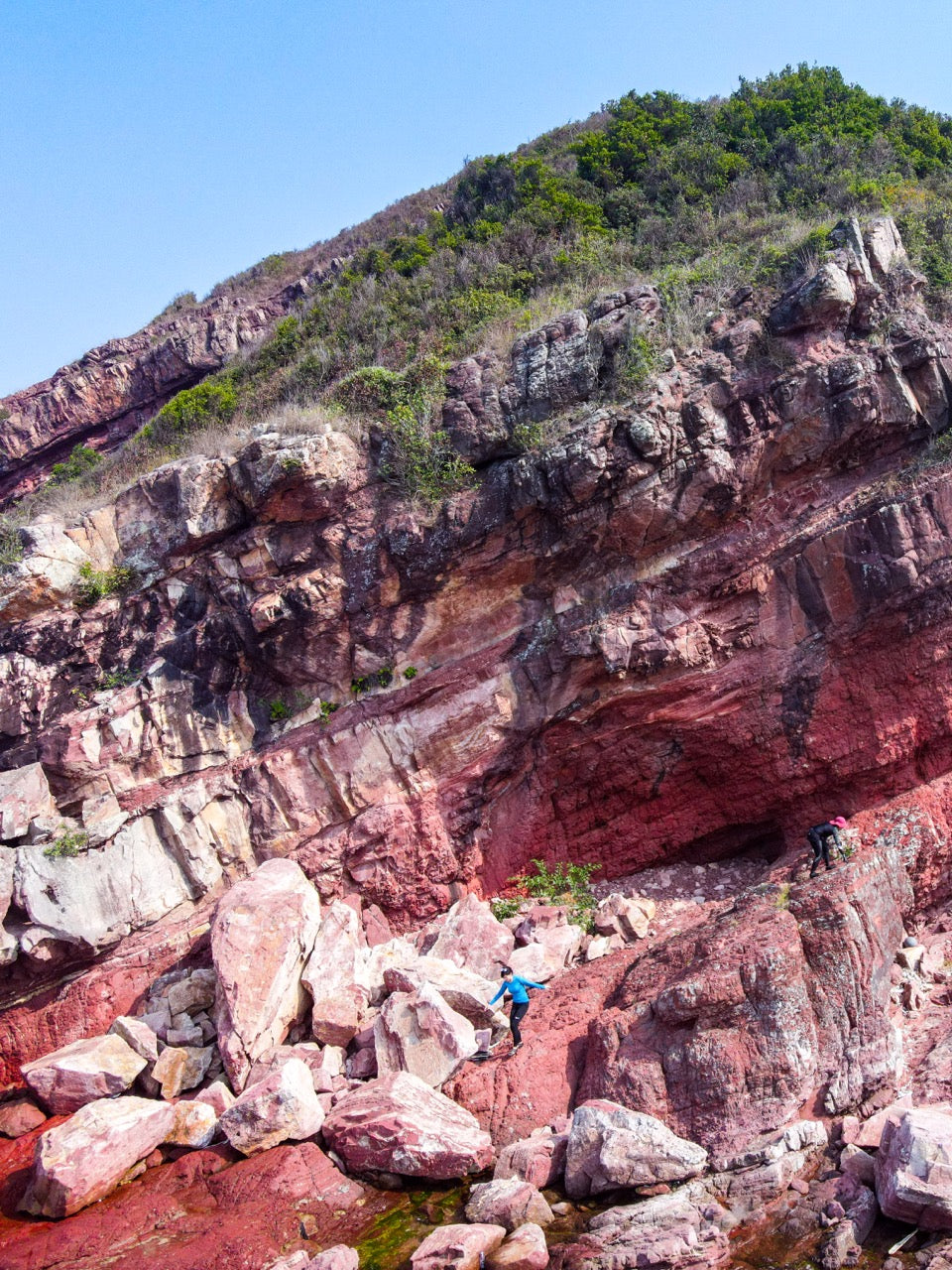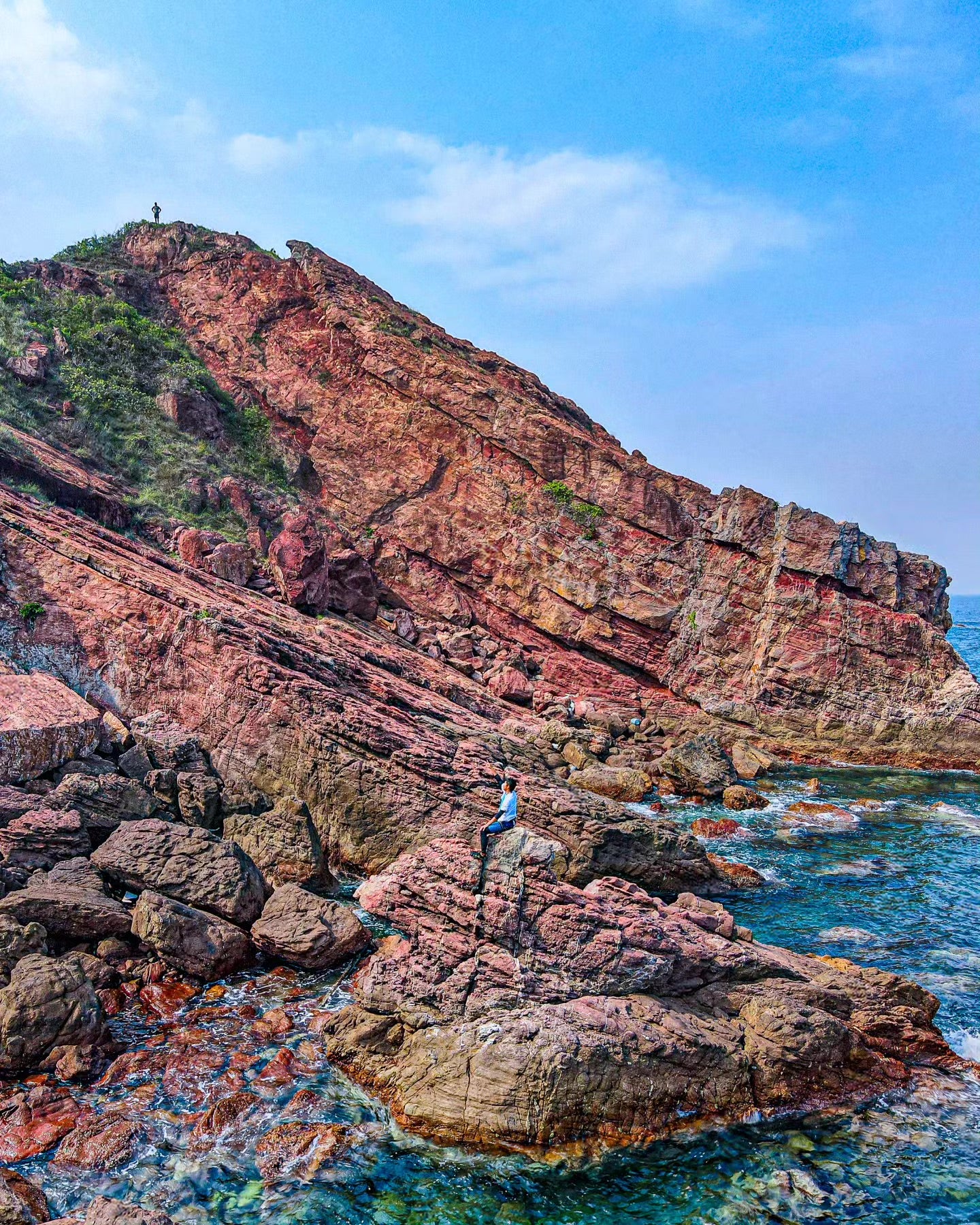Port Island's red ridge is a geological marvel that sets itself apart from other red rock landscapes worldwide. Unlike typical terrestrial red rock formations, this unique shoreline offers a rare spectacle of crimson peaks meeting the sea, creating a breathtaking panorama that seamlessly blends iron-rich sedimentary rocks with azure ocean waters, earned its name as the Sea Danxia. (The red ridge on Port Island is accessible via a short 10-minute hike from Red Beach and marks the highest point of our tour, so there's no need for further ascent.)