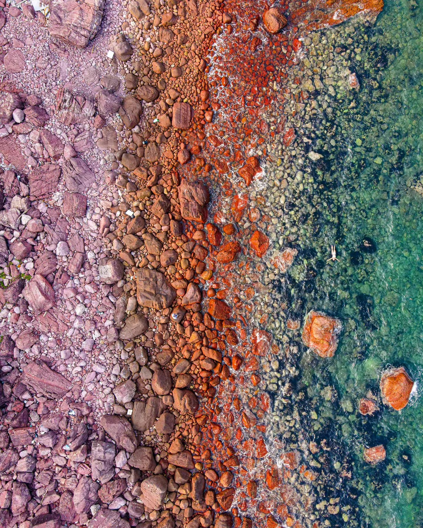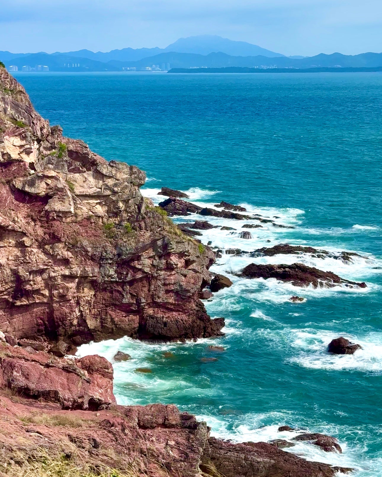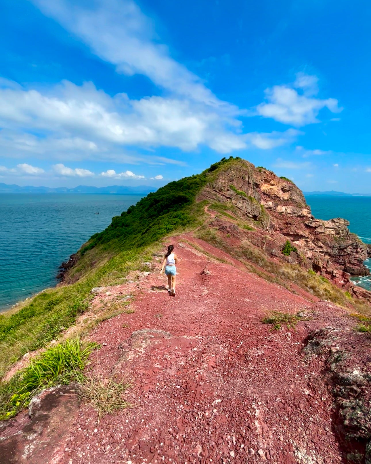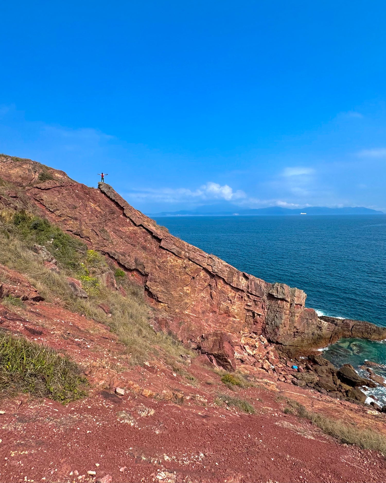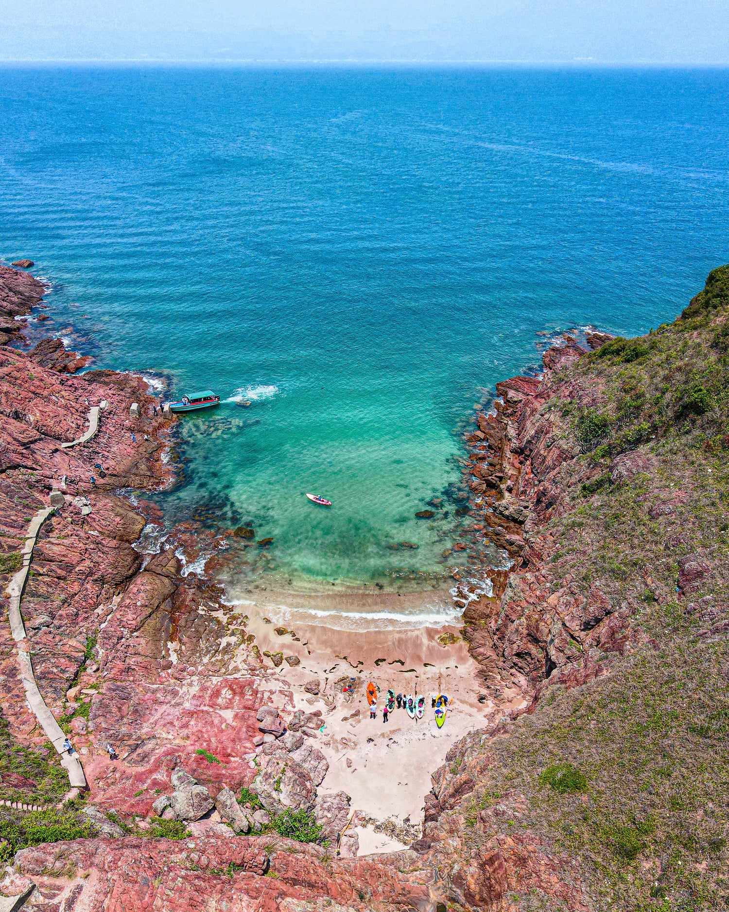 Port Island's red ridge is a geological marvel that sets itself apart from other red rock landscapes worldwide. Unlike typical terrestrial red rock formations, this unique shoreline offers a rare spectacle of crimson peaks meeting the sea, creating a breathtaking panorama that seamlessly blends iron-rich sedimentary rocks with azure ocean waters, earned its name as the Sea Danxia. (The red ridge on Port Island is accessible via a short 10-minute hike from Red Beach and marks the highest point of our tour, so there's no need for further ascent.)