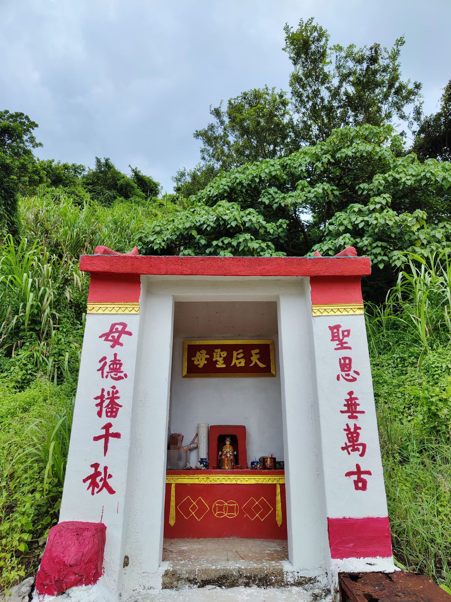 The Tin Hau Temple in Tai Wan Bay, Port Island, is a small and simple shrine dedicated to the Goddess of the Sea, accessible only by speedboat due to its remote location, offering a serene spot for reflection amidst the natural beauty of the bay.