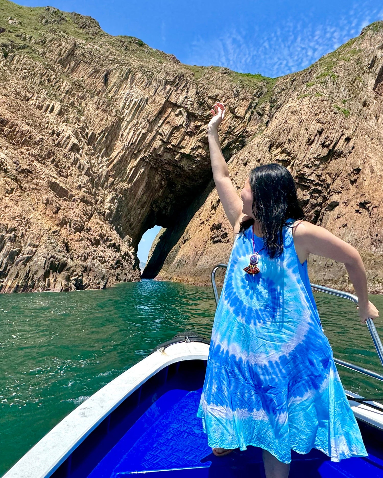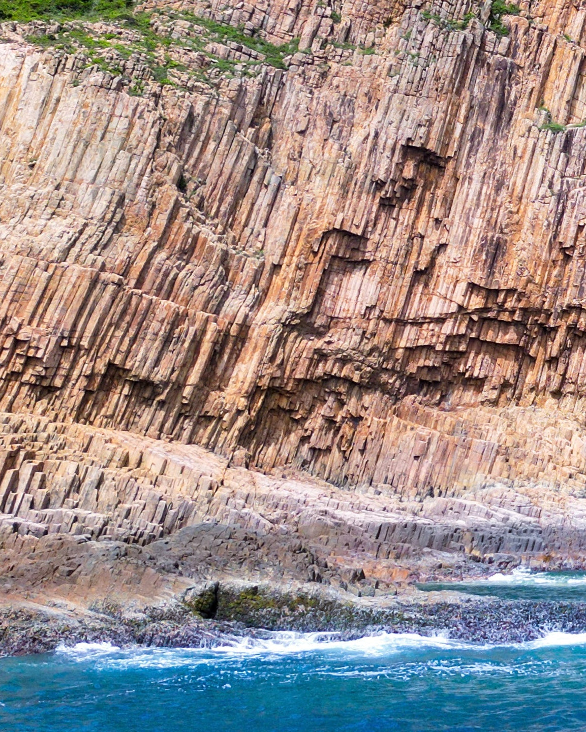 The Ung Kong Group consists of four distinct islands: Jin Island, known for its iconic Bell Arch; Bluff Island, featuring impressive sea cliffs and caves; Basalt Island, home to unique volcanic rock formations; and Wang Chau, island with notable sea caves and hexagonal volcanic rock columns. Together, they showcase Hong Kong's geological wonders.