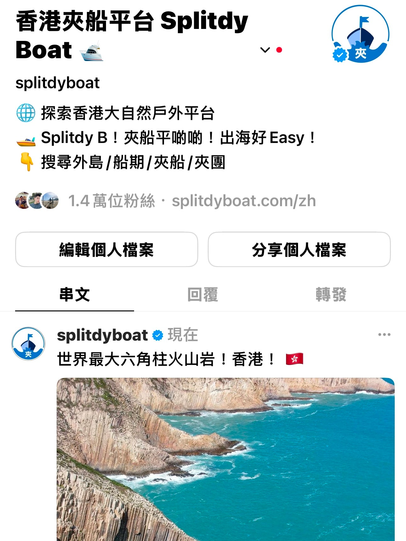 與Splitdyboat聯繫,推廣您的業務,輕鬆接觸我們在Threads上的戶外自然愛好者目標社群受眾。加入我們快速增長的旅程,與熱愛冒險的熱情愛好者互動!
