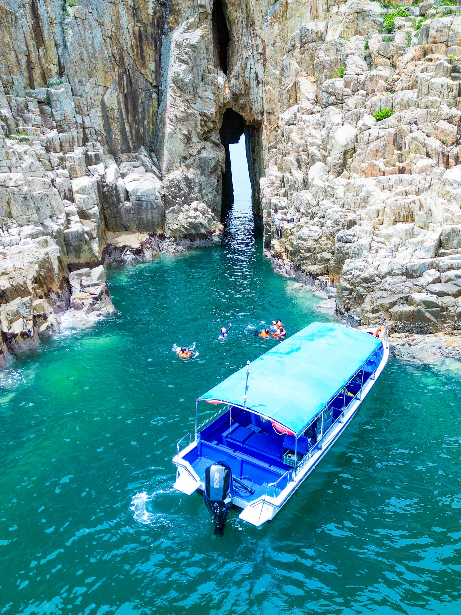 對於喜歡更放鬆體驗的人,我們的四洞火山遊船觀光導賞團提供環繞沙頭口山的風景之旅。從快艇的舒適中欣賞海岸線和獨特火山岩形成的全景。這次旅程提供參觀香港地質公園八大自然奇觀的機會,拍攝壯麗照片並了解島嶼的地質歷史,非常適合家庭和觀光愛好者。