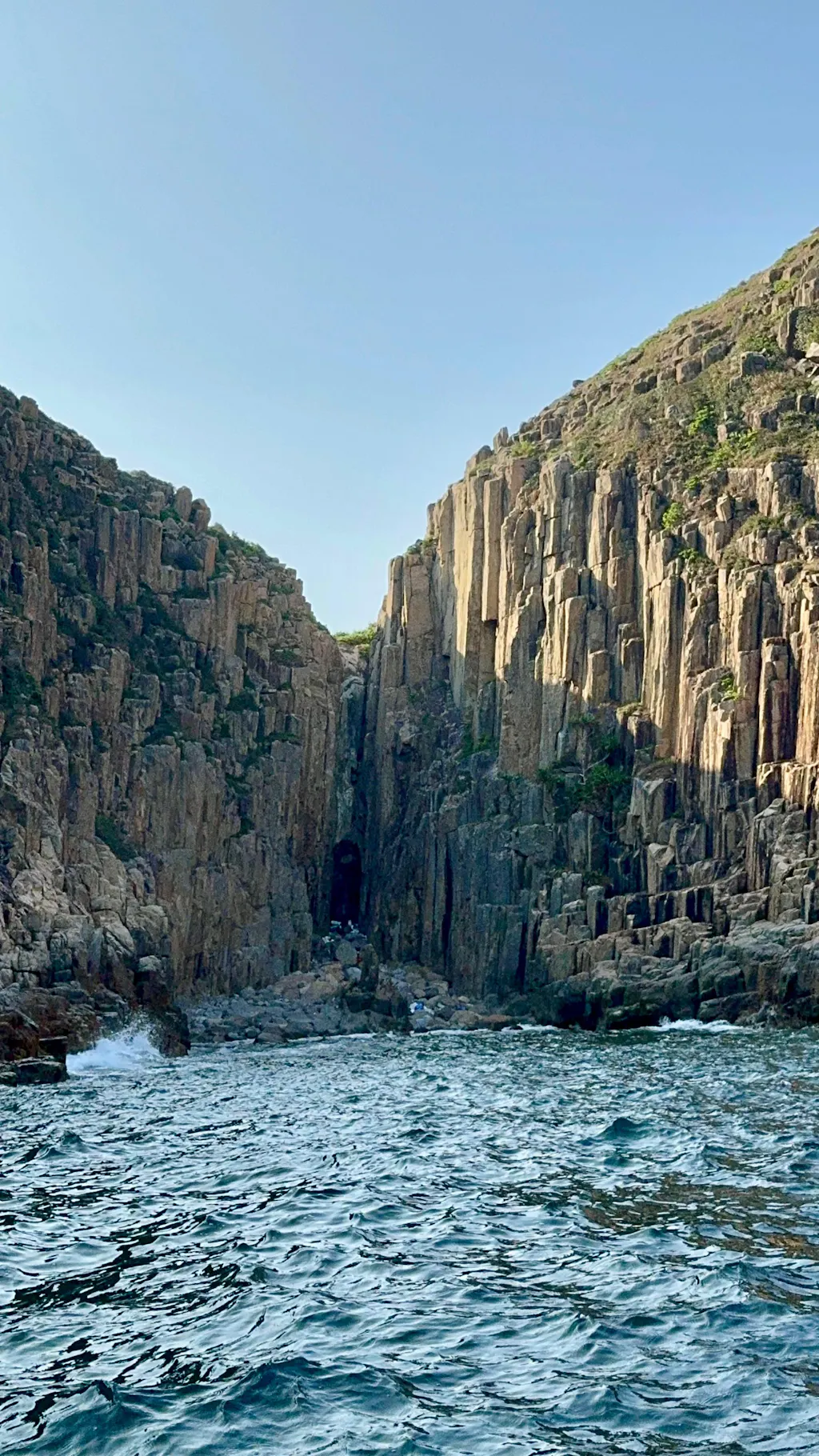 隨著參加者從吊鐘洲的吊鐘洞西面入口進來,他們將迎來看到吊鐘大拱門的壯麗景象。陽光透過開口灑入,照亮了洞穴內部壯觀的六角形火山岩柱,營造出如同精緻冰雕般的夢幻氛圍。一旦進入吊鐘洞的東面入口,參加者可以稍作停留,欣賞獨特的地質特徵以及海浪撞擊岩石所發出的聲音。