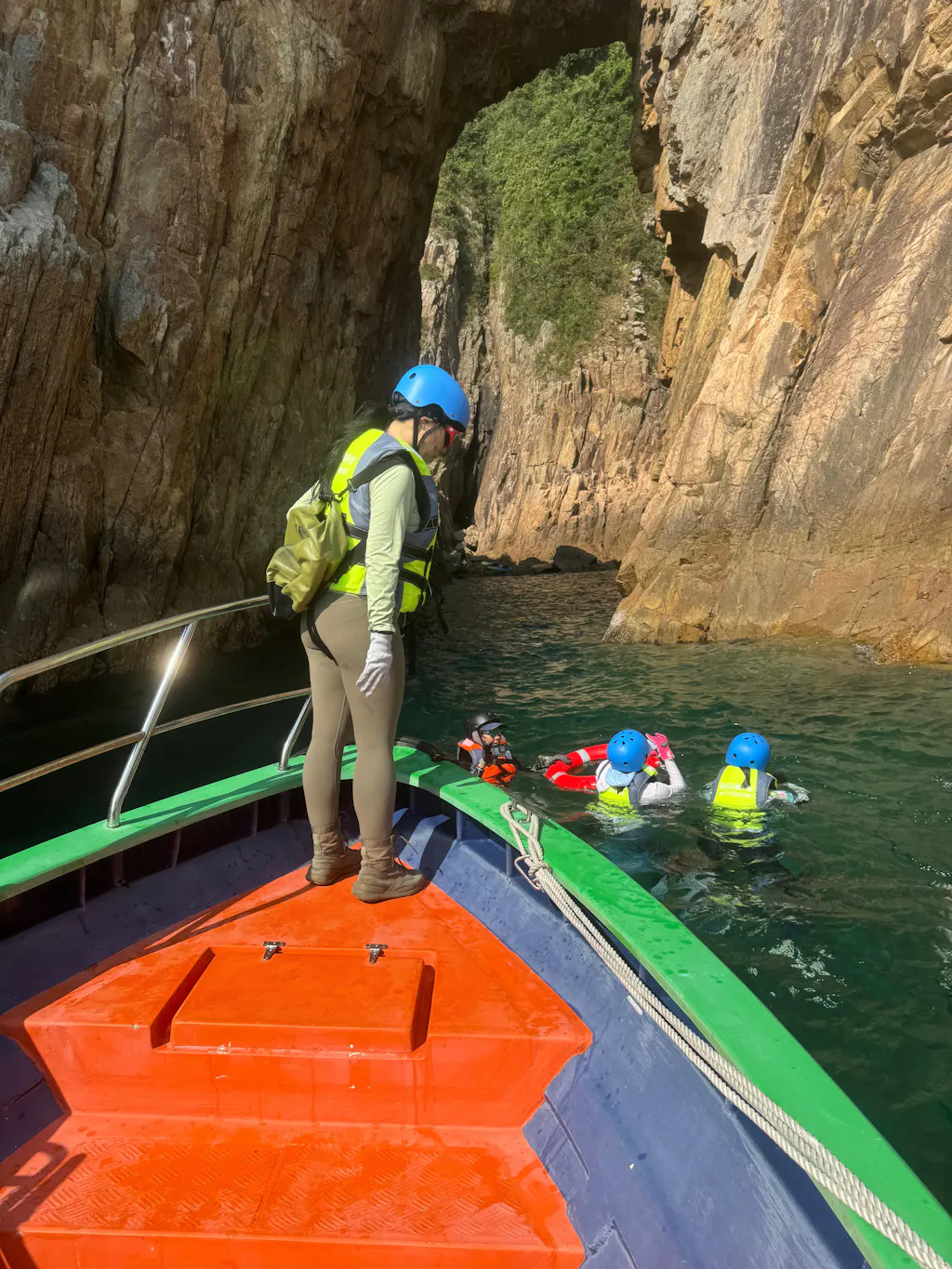 在吊鐘洞西面入口欣賞壯觀的景色並拍攝難忘的照片後,參加者將準備繼續他們的冒險,通過游泳方式穿過拱門的入口。這種刺激的體驗將他們帶入洞穴系統的更深處,在那裡可以探索吊鐘洲更多的自然美景和地質奇觀。隨著船家快艇在附近等待參加者的返回,參加者無需擔心體力後續問題,便可展開這段難忘的自然奇觀之旅。