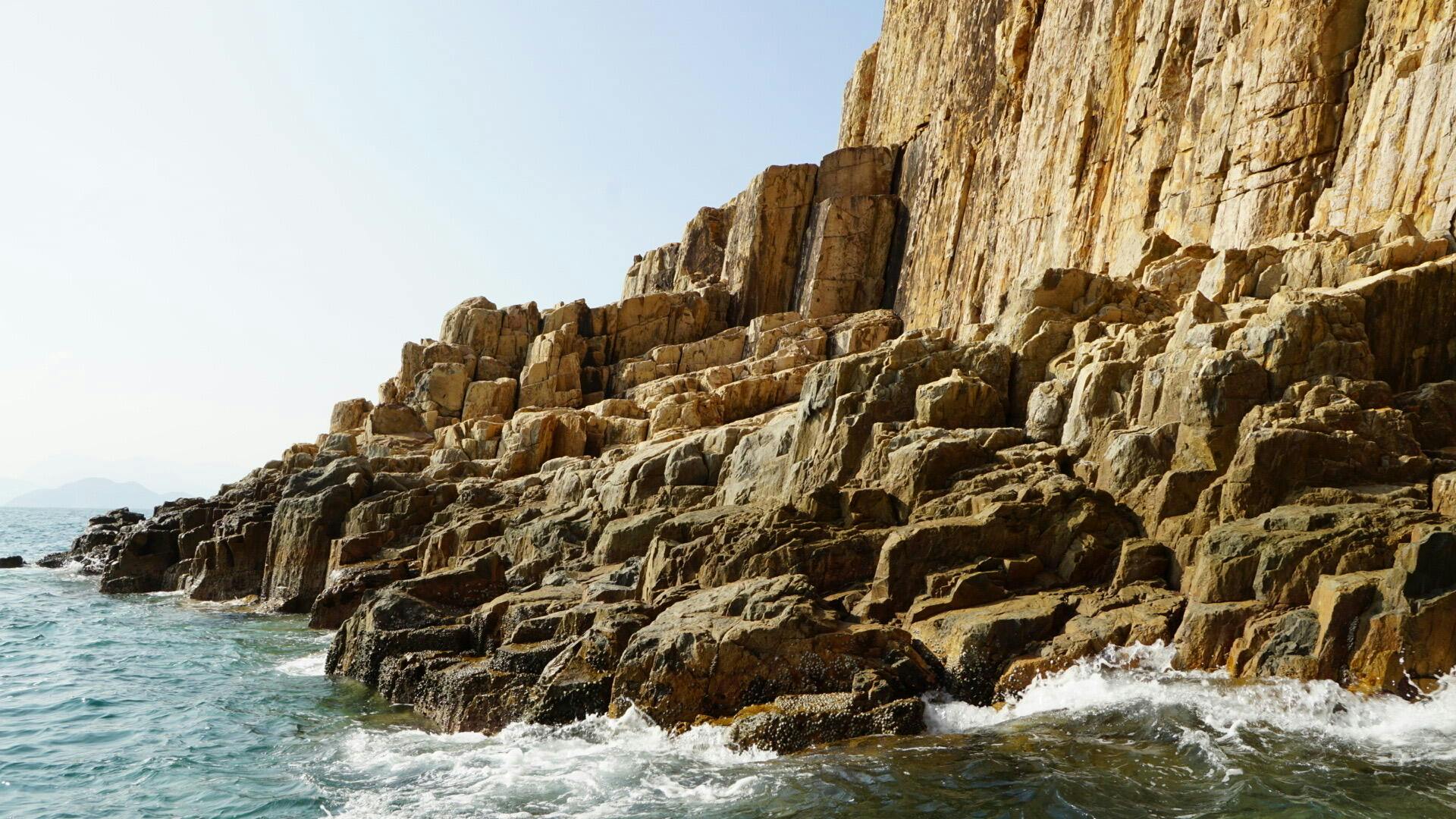 香港地質公園觀光遊船之旅的第五站是位於橫洲的**海上宮殿**。這個壯觀的海岸線擁有一座由六角形火山岩柱組成的驚人懸崖,展示了約1億4千萬年前古老火山活動所形成的地質特徵。海上宮殿長約300米,為遊客提供了壯麗的景色,這些獨特的岩柱從海中雄偉地拔起,創造出引人入勝的景觀,突顯了該地區的自然美和地質意義。