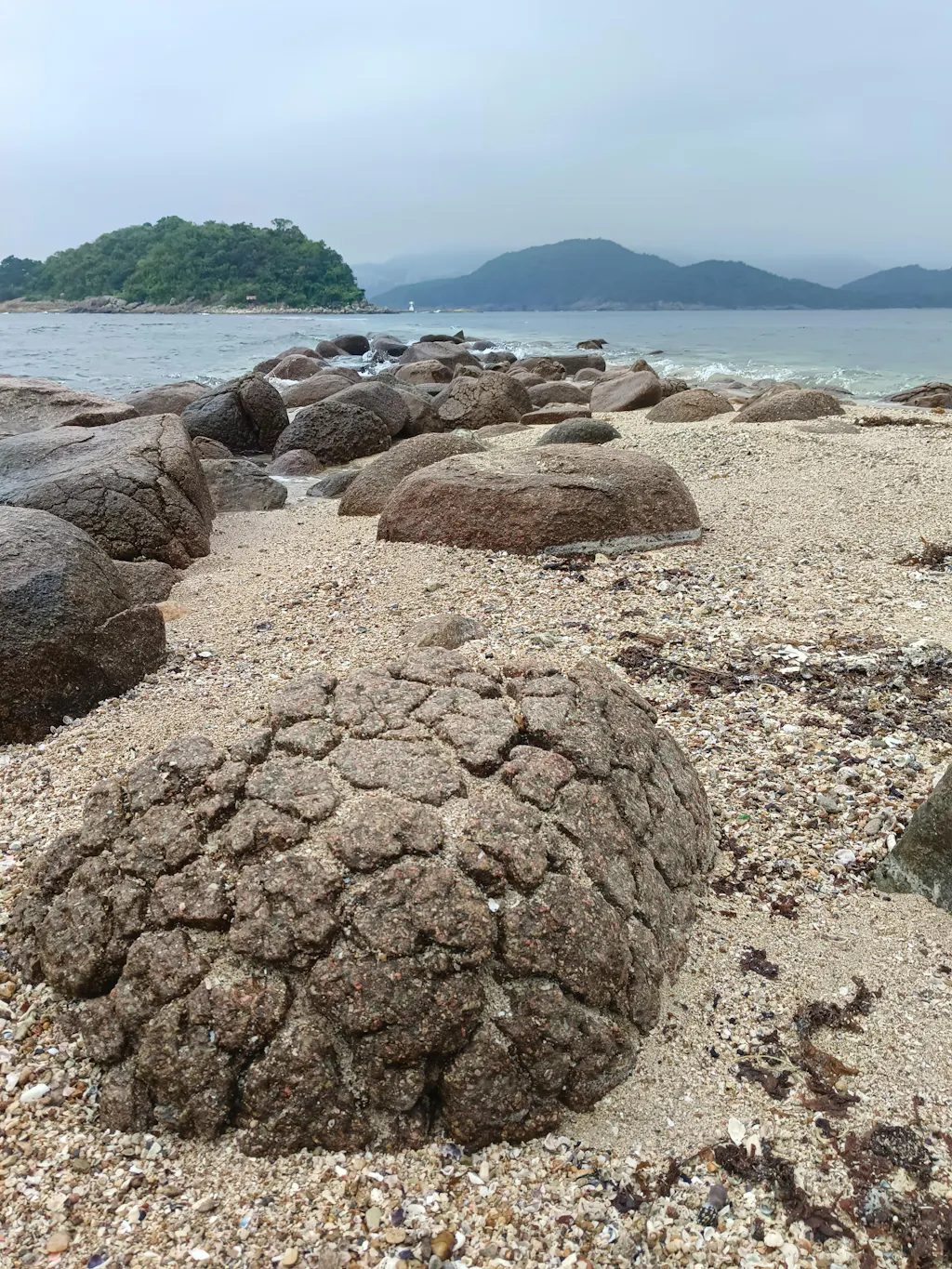 橋咀島上的標誌性火山岩,岩石表面形狀像菠蘿包,岩石表面有裂紋,猶如菠蘿包酥脆的外層。
