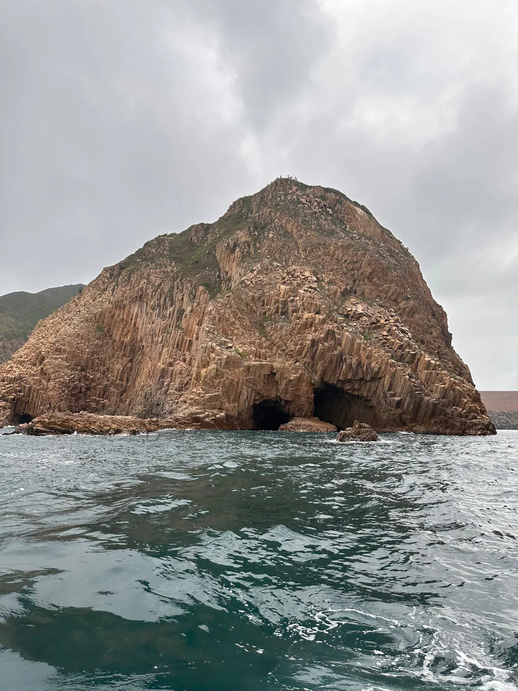 香港地質公園觀光遊船之旅的第二站是位於破邊洲的**風琴壁**。這個壯觀的海岸線以其令人印象深刻的六角形火山岩柱而聞名,這些岩柱從海中拔地而起,宛如一座巨型管風琴。這些獨特的地形是在約1億4千萬年前的古老火山活動中形成的,展示了塑造該地區的強大地質過程。