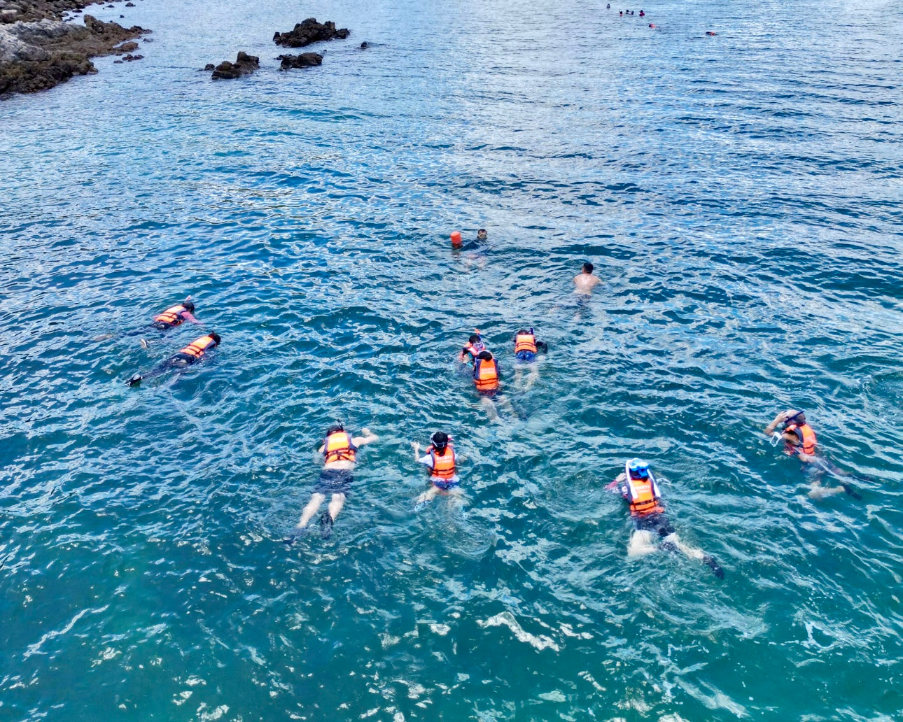 在浪芒灣浮潛是一個難忘的體驗,特別是在專業潛水教練的指導下。在經過20分鐘的安全說明後,參與者將會迎接到這個壯觀的水下地點,準備探索其充滿活力的水下世界。透過專業的指導和導賞,各種技能水平的浮潛者都能自信地發現多樣的海洋生物和美麗的珊瑚形態。教練提供必要的安全知識和浮潛技巧,確保即使是初學者也能在水中感到舒適。