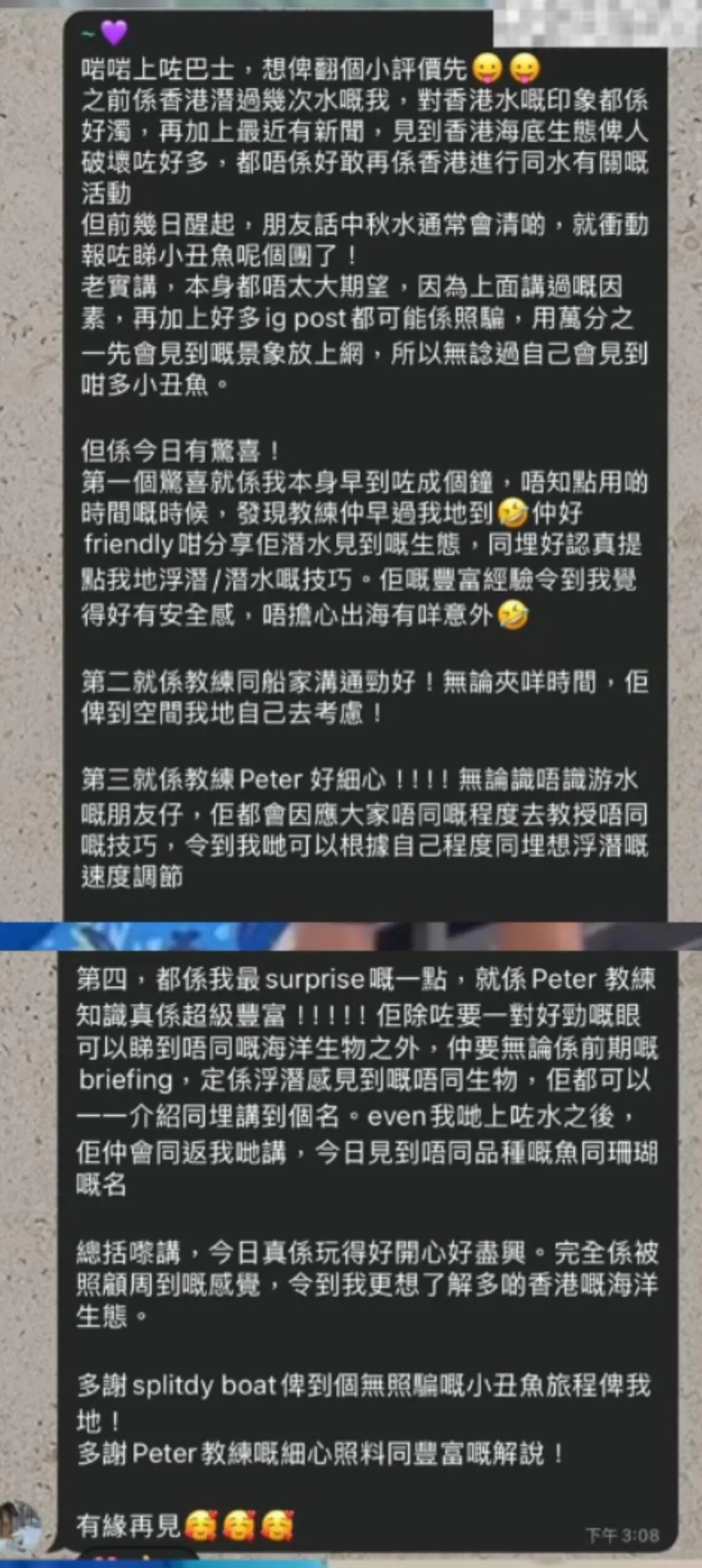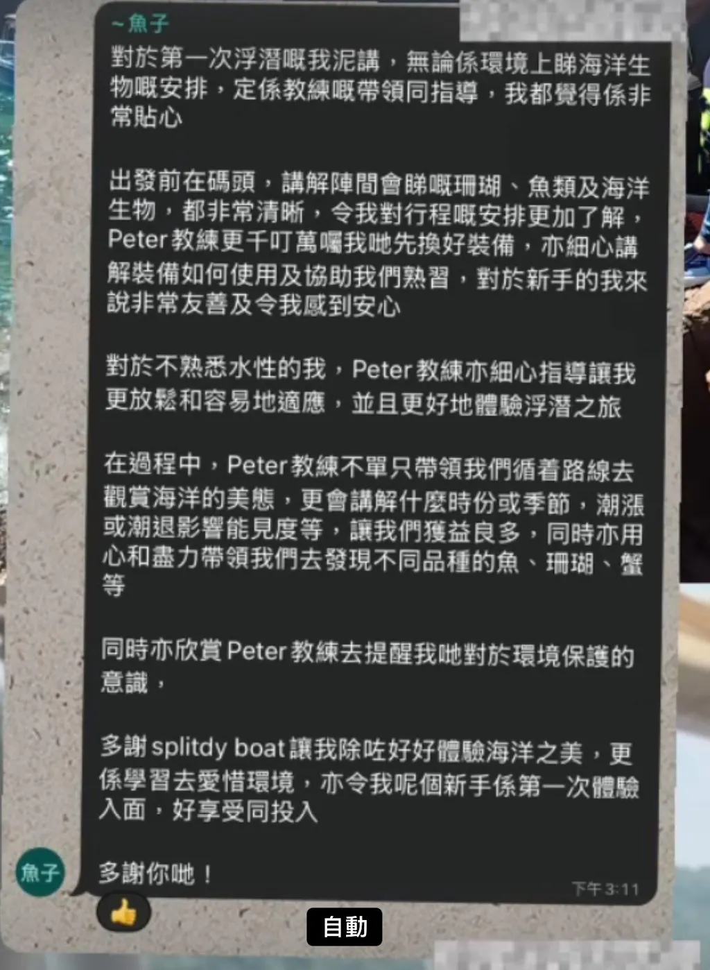 多謝splitdy boat 讓我除咗好好體驗海洋之美,更係學習去愛惜環境,亦令我呢個新手係第一次體驗入面,好享受同投入