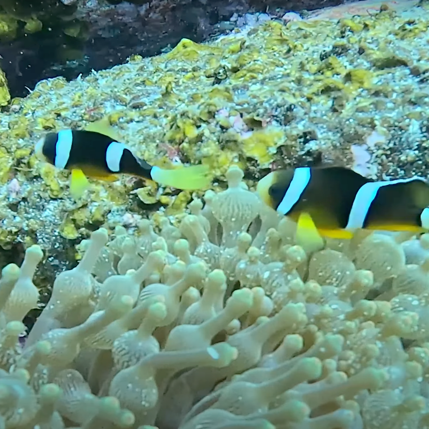 The Yellowtail Clownfish, scientifically known as Amphiprion clarkii, is a vibrant marine fish that can be found in the Sai Kung East Dam. Recognizable by its striking orange color and yellow tail, it forms symbiotic relationships with sea anemones, providing protection and food for both species. These fish typically grow up to 14 cm in length.