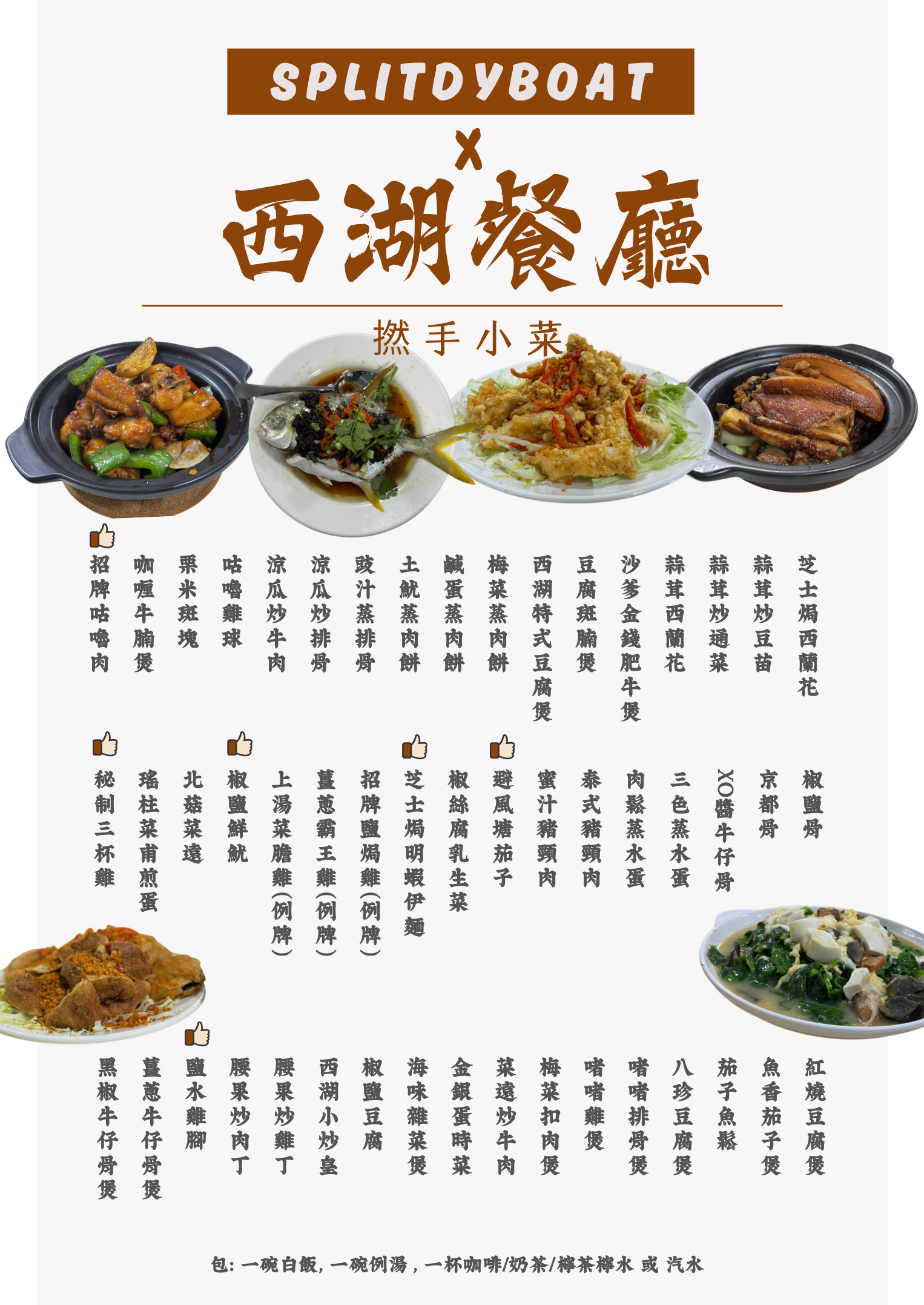 ☆ 西湖家常小炒餐單獨買:每人 HKD 120