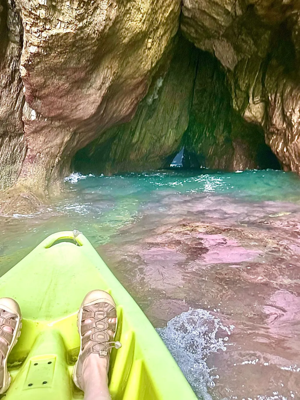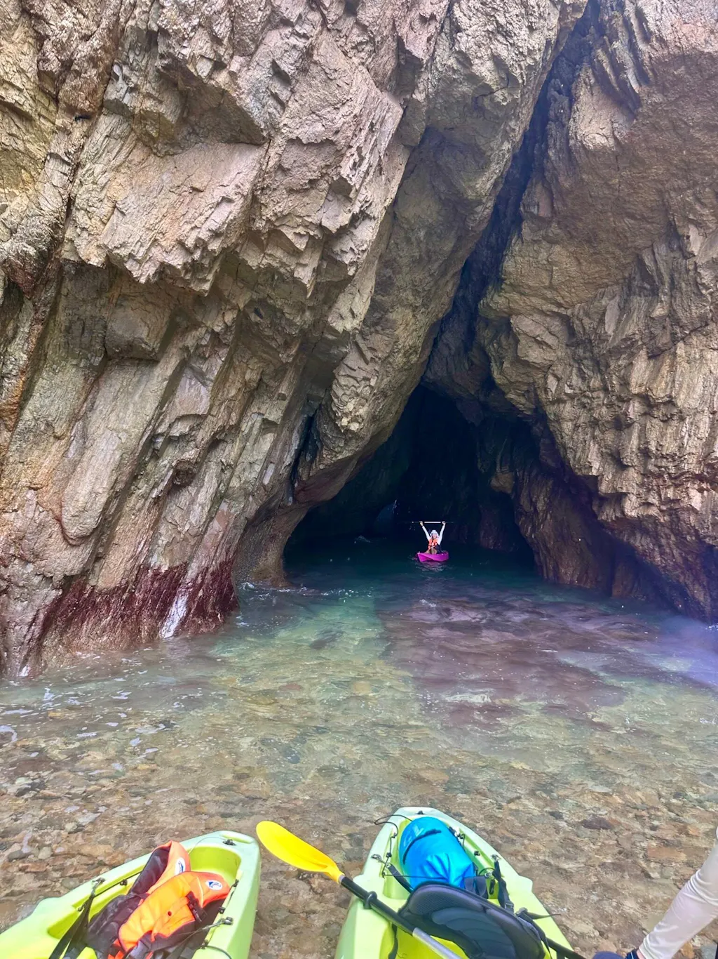 從三叉洞的東入口穿越到西入口,為獨木舟(皮划艇)愛好者提供了一次令人振奮的體驗,他們在這個壯觀的海蝕隧道中划艇前行,欣賞其獨特的形狀和美麗的岩石結構,同時享受穿越相互連接通道的刺激感!