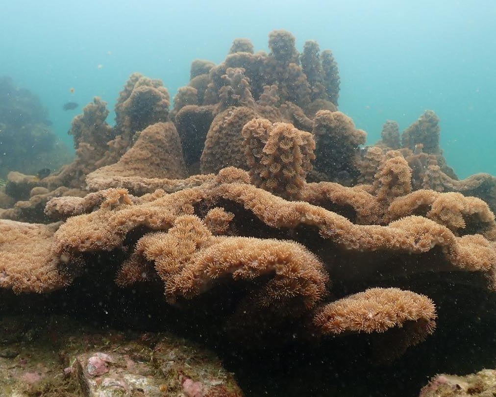柱角孔珊瑚,常見於威士忌灣,是一種引人注目的珊物種,以其鮮豔的顏色和獨特的珊瑚蟲結構而著稱。這些珊瑚擁有大型、肉質的珊瑚蟲,具有十二根觸手,白天和夜晚均會伸展。它們在清澈的水域中茁壯成長,為香港的水下生態系統豐富的生物多樣性做出貢獻。